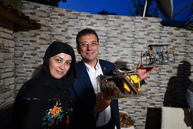 Kalay ailesinin evinde iftar açan Ekrem İmamoğlu ve Kalay çiftine, kızları Esila (8) ve Sahra (6) ile ailenin yakınları eşlik etti. İmamoğlu ve aile, iftar öncesinde toplu anı fotoğrafı çektirdi. İmamoğlu, açık havada, keyifli bir sohbet eşliğinde iftarını açarken, yol boyu kendisine verilen çiçekleri, Kalay ailesine hediye etti. Evin annesi Fatma Kalay da atık maddelerden kendi yaptığı ev maketlerini İmamoğlu’na hediye olarak sundu.