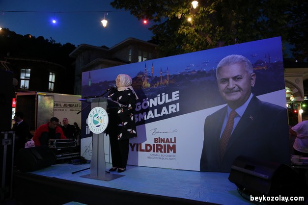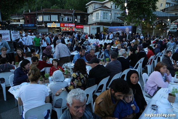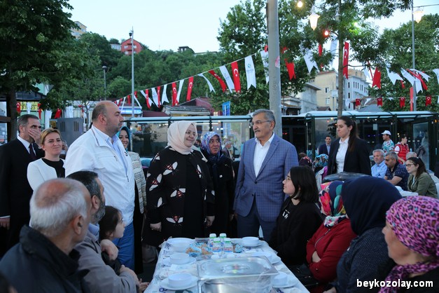 Beykozlular Ramazan Ayı’nın bereketini ve sevincini sokak ve meydan iftarlarında paylaşmaya devam ediyor. Beykoz Meydanı’nı dolduran ilçe sakinleri, iftarda aileleri ve komşularıyla birlikte oruç açtı.Beykoz Meydanı’nda düzenlenen 3000 kişilik iftar sofrasında Aile Çalışma ve Sosyal Politikalar Bakanı Zehra Zümrüt Selçuk, Beykoz Belediye Başkanı Murat Aydın, AK Parti Beykoz İlçe Başkanı Hanefi Dilmaç, meclis üyeleri, başkan yardımcıları ve ilçe sakinleri bir araya geldi.Beykoz Merkez Mahallesi Meydanı’nı ve sahili dolduran vatandaşlar ‘Gönülden Gönüle İftar Buluşmaları’ konseptiyle ney ve kanun musikisi, Kur’an-ı Kerim tilavetini dinleyerek iftarı bekledi.İftar sofrasında sıcak ilgiyle karşılanan Aile Çalışma ve Sosyal Politikalar Bakanı Zehra Zümrüt Selçuk, Başkan Murat Aydın ve beraberindekiler, tek tek iftar masalarını dolaşarak Beykozlularla sohbet etti.Aile Çalışma ve Sosyal Politikalar Bakanı Zehra Zümrüt Selçuk: Devrim niteliğinde hizmetler gerçekleştirmeye devam ediyoruz.”
