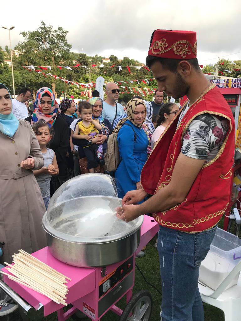Beykoz Belediyesi alana gelen çocuklara Osmanlı Macunu, pamuk şeker ve patlamış mısır ikram etti.