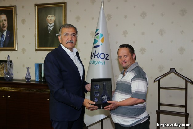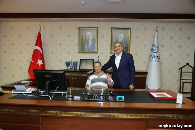 Cumhurbaşkanı Recep Tayyip Erdoğan’ın manevi oğlu, down sendromlu İbrahim Ertepe (İbo) Beykoz Belediye Başkanı Murat Aydın’a hayırlı olsun ziyaretinde bulundu.Zeytinburnu’nda sosyal hayatın renklerinden, azmi ve efendi kişiliğiyle herkes tarafından çok sevilen İbo, Beykoz Belediye Başkanı Murat Aydın’ı makamında ziyaret etti.