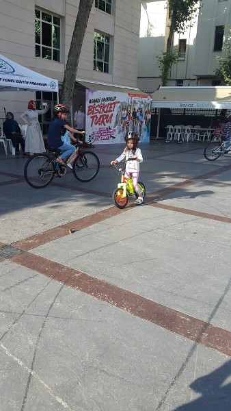 Beykozlulara yönelik ücretsiz Temel Bisiklet Eğitimi Programı ile 7’den 70’e ilçe sakinleri bisiklet sürmenin keyfini yaşıyor. Beykoz Belediye Meydanı bisiklet eğitim uygulama alanı çocuklar, anne kız, komşular, gençler ve iş çıkışı uğrayan çalışanların oluşturduğu gruplarla doluyor. Kayıt alınarak başlayan eğitimde öncelikle katılımcının güvenliği açısından kask takılıyor, sonrasında kişinin vücut yapısı ve bedenine göre bisiklet aparatları ayarlanarak kullanıcıya dengede durma duruşu kazandırılıyor, kondisyona göre de eğitime geçiliyor.