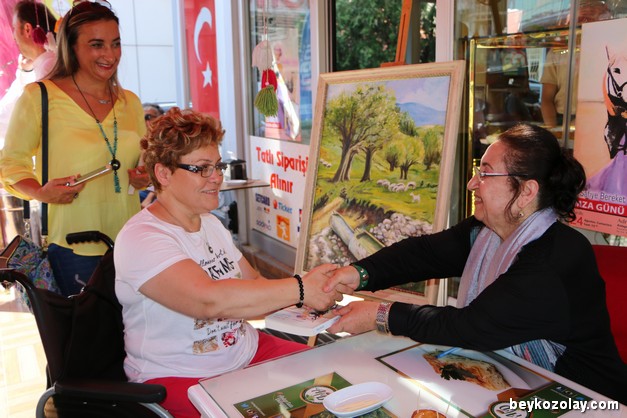 Safiye Bereket’in ‘Bir Kadın Bir Hayat Bin Şiir’ adlı kitabının imza gününe Acarlar Şirketler Topluluğunu temsilen Funda Acar, TOFD Beykoz Şube Başkanı Saniye Efe, Artvinliler Dernek Başkanı Mehmet Uzun, Rizeliler Dernek Başkanı Mikail Akyıldız, Anadoluhisarı Turizm Kalkındırma Derneği Başkanı Mustafa Babuz, Halk Eğitim Hocaları ve Beykozlu sanatseverler katıldı. Antep Tatlı Dünyasının kurucusu olan Taner Mert’in organize ettiği imza gününde ayrıca Safiye Bereket’in yağlı boya tabloları da sergilendi. Misafirlere Antep Tatlı Dünyasında yapılan Gaziantep’e özgü tatlılar ikram edildi.