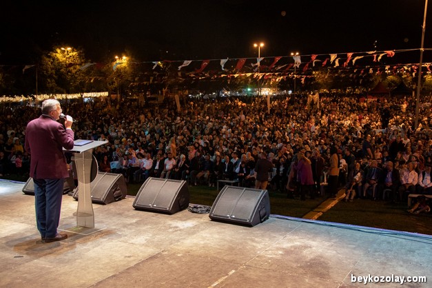 Belediye Başkanı Murat Aydın derneklerin standlarını tek tek yerinde ziyaret ederek vatandaşlara Muharrem Ayı dolayısıyla aşure ikram etti. Başkan Murat Aydın yaptığı konuşmada “Yöre derneklerimiz ve hemşehrilerimiz ile Serebral Palsi hastalığı için “Tek Yürek” olduk. Bu akşam çayırımızda boş yer bırakmayan binlerce hemşehrimize çok teşekkür ediyorum. Ülkemizin birliğine dirliğine, kardeşliğimizin güçlenmesine katkı verdik. Türkiye’mizdeki zenginliklerimizin Beykoz aracılığı ile yayılmasını arzu ediyoruz. Tüm ilçe protokolümüze, STK ve saygıdeğer dernek başkanlarımıza, Serebral Palsi ile mücadele veren ailelerimize ve emeği geçen herkese çok teşekkür ediyorum. Düzenlemiş olduğumuz tüm bu etkinlikler bizleri birbirimize daha da bağlıyor. Kurduğumuz güçlü bağlar bizi “Tek Yürek” kılıyor” diye konuştu.Yöre derneklerinin oyunlarının sergilendiği “7 bölge 7 renk“ karma folklor gösterilerinden sonra ünlü sanatçı Mustafa Ceceli sahne aldı.