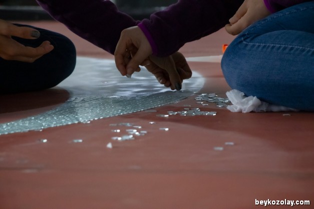 Açılışı 22 Ekim 2019 Salı günü yapılan etkinlik kapsamında Belediye Meydanı’ndan geçen vatandaşlar, çocuklar, gençler ve öğrenciler bir hafta boyunca cam sanatçıları eşliğinde parçaları birleştirerek bayrağı oluşturacak.