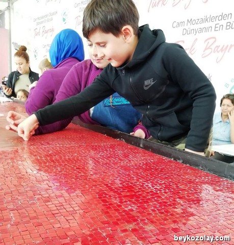 Meydandan geçen ilçe sakinleri, çocuklar, gençler ve öğrenciler bir hafta boyunca cam sanatçıları eşliğinde parçaları birleştirerek bayrağı oluşturmanın gururunu ve onurunu yaşadı. Beykoz Kaymakamı Ahmet Katırcı ve Beykoz Belediye Başkanı Murat Aydın da öncüsü oldukları çalışma kapsamında vatandaşlarla birlikte bayrağa mozaik parçası koydu.