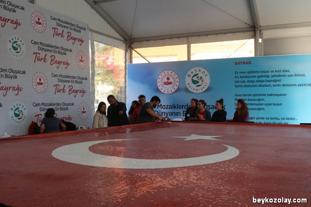 Beykoz Kaymakamlığı ve Beykoz Belediyesi tarafından, Cumhuriyetin 96. Kuruluş Yıl Dönümü kutlamaları kapsamında yapımına 22 Ekim Salı günü başlanan “Dünyanın En Büyük Parça Cam Mozaiğinden Oluşan Türk Bayrağı’’ ilçe sakinlerinin yoğun ilgisiyle 1 haftadan az bir sürede tamamlandı.
