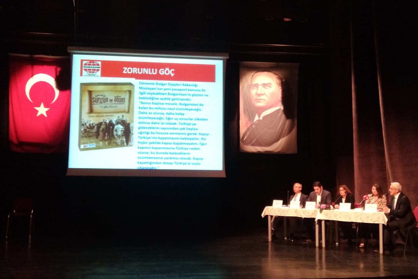 Doç. Bülent Yıldırım, Bulgaristan’dan göç ve nüfus hareketlerini kronolojik bir sıra ve sayılarla anlattı. Diğer konuşmacılar, Tarihçi Gülbahar Kurtuluş ve Yazar Ayten Öztürk, 1989 Göçünü yaşayanlar üzerindeki travmayı çektikleri sıkıntılarını ve geleceklerine etkilerini, topraklarından zorla koparılmanın aileye ve bireye yansımalarını anlattılar.
