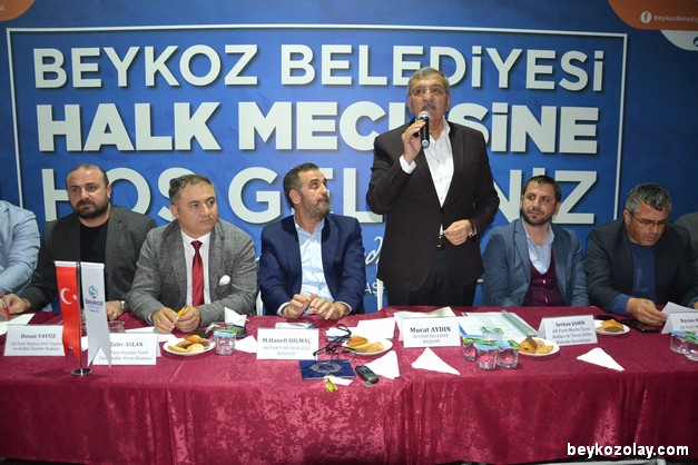Çavuşbaşı Ahmet Akça İlkokulu’nun bahçesinde gerçekleştirilen Halk Meclisi toplantısının açılışında muhtarlar organizasyondan dolayı Beykoz Belediye Başkanı Murat Aydın’a teşekkür etti.