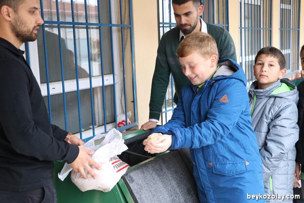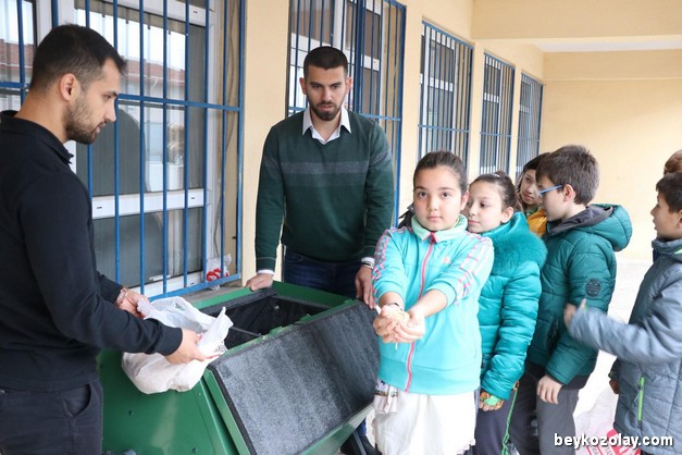 Proje kapsamında öğrencilere organik atıklar harici atık türleri hakkında da bilgi veriliyor.