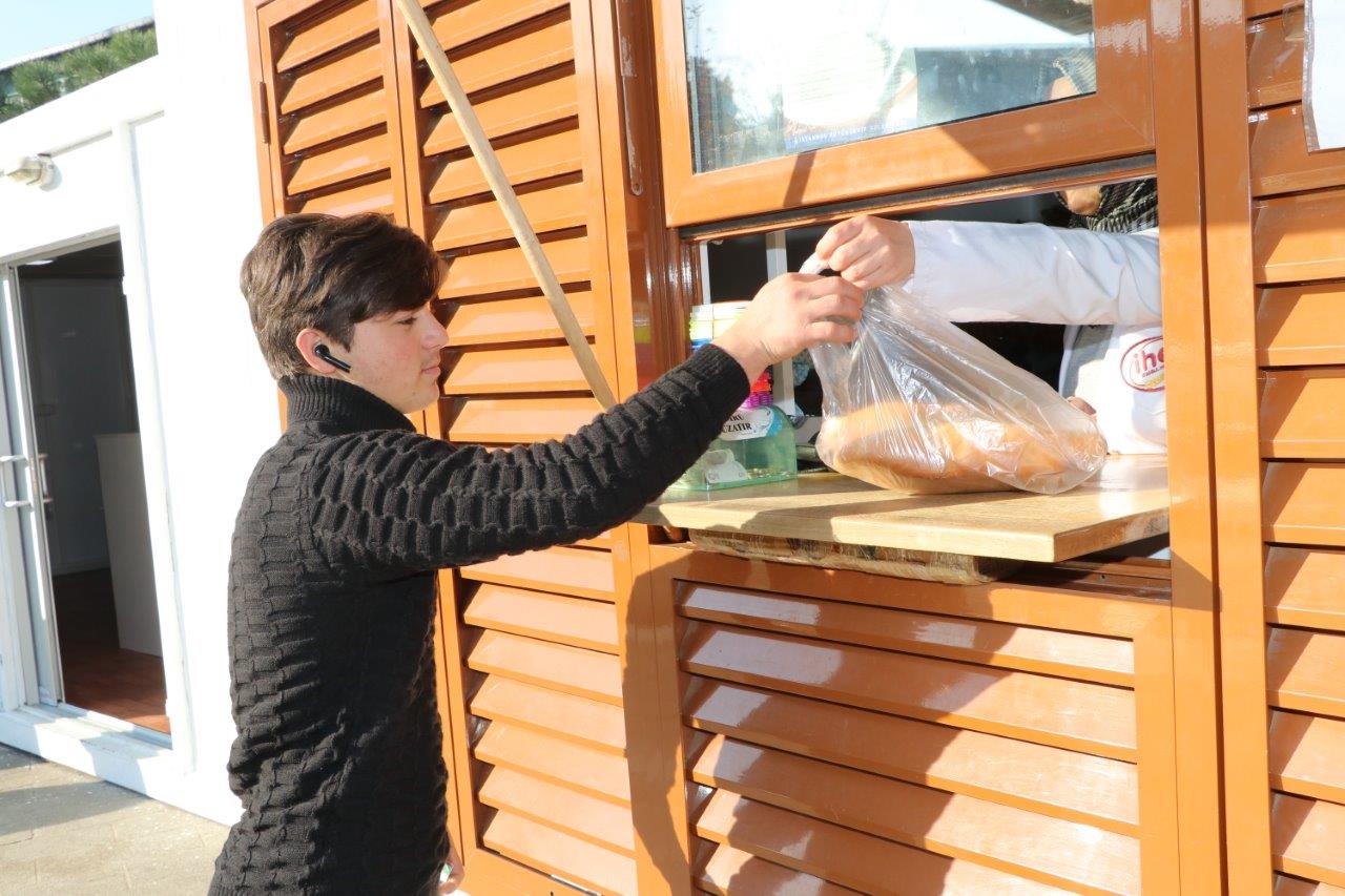 Ortaçeşme Meydanı’na kurulan atık getirme merkezine kağıt, karton, plastik, metal ve cam atıklarını getiren vatandaşlar her 5 kg için Halk Ekmek’ten 1 ekmek alıyor.