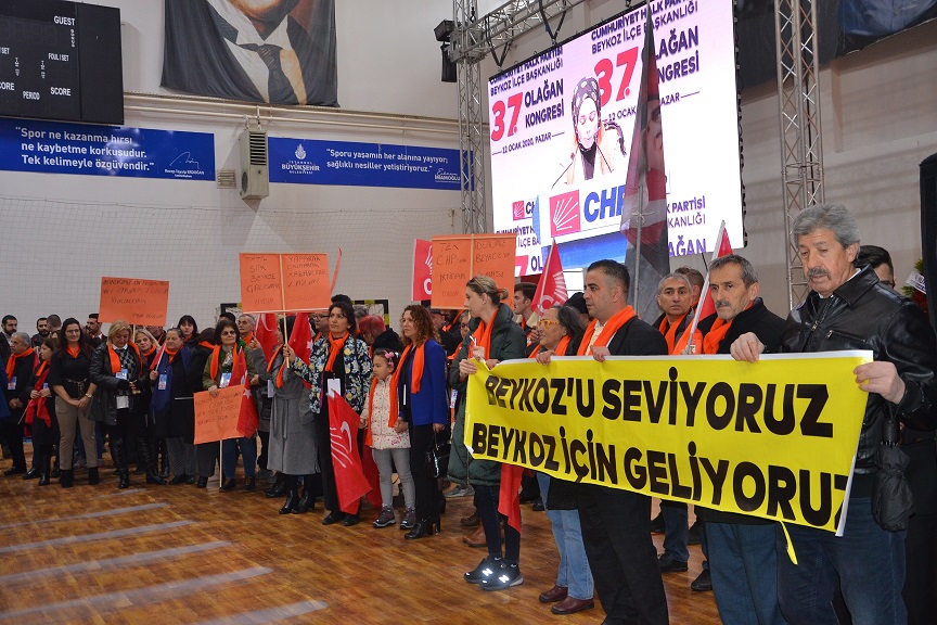 CHP Beykoz İlçe Başkanlığı’nın 37. Olağan İlçe Kongresi yapıldı. Aydın Düzgün ilçe başkanlığına yeniden seçildi.Beykoz Recep Şahin Köktürk’ü dolduran partililer Beykoz’da heyecanlı bir gün yaşarken, Uğur Çelebi delegelerden yeterli desteği göremediği için kongreden çekilmek zorunda kaldı.Aydın Düzgün, Mahir Taştan ve Gülten Demirbaş’ın yarıştığı kongrede Divan Başkanlığına İlçe Başkan adayların önergesi ve delegelerin oylarıyla CHP Giresun Milletvekili Necati Tığlı seçildi.