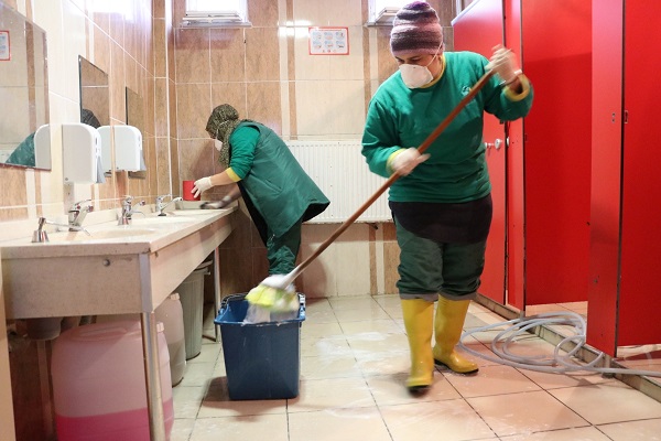 Tatilde okul tuvaletlerini dolaşan temizlik ekipleri, yeni dönem öncesinde hijyenik ve düzenli ortamlar sağladı.Detaylı şekilde okul lavaboları, aynaları, camları, kapıları ve tuvaletleri temizlendi,  sıvı sabun, havlu kağıt ve tuvalet kâğıdı gibi gerekli tüm hijyen malzemeleri monte edildi.