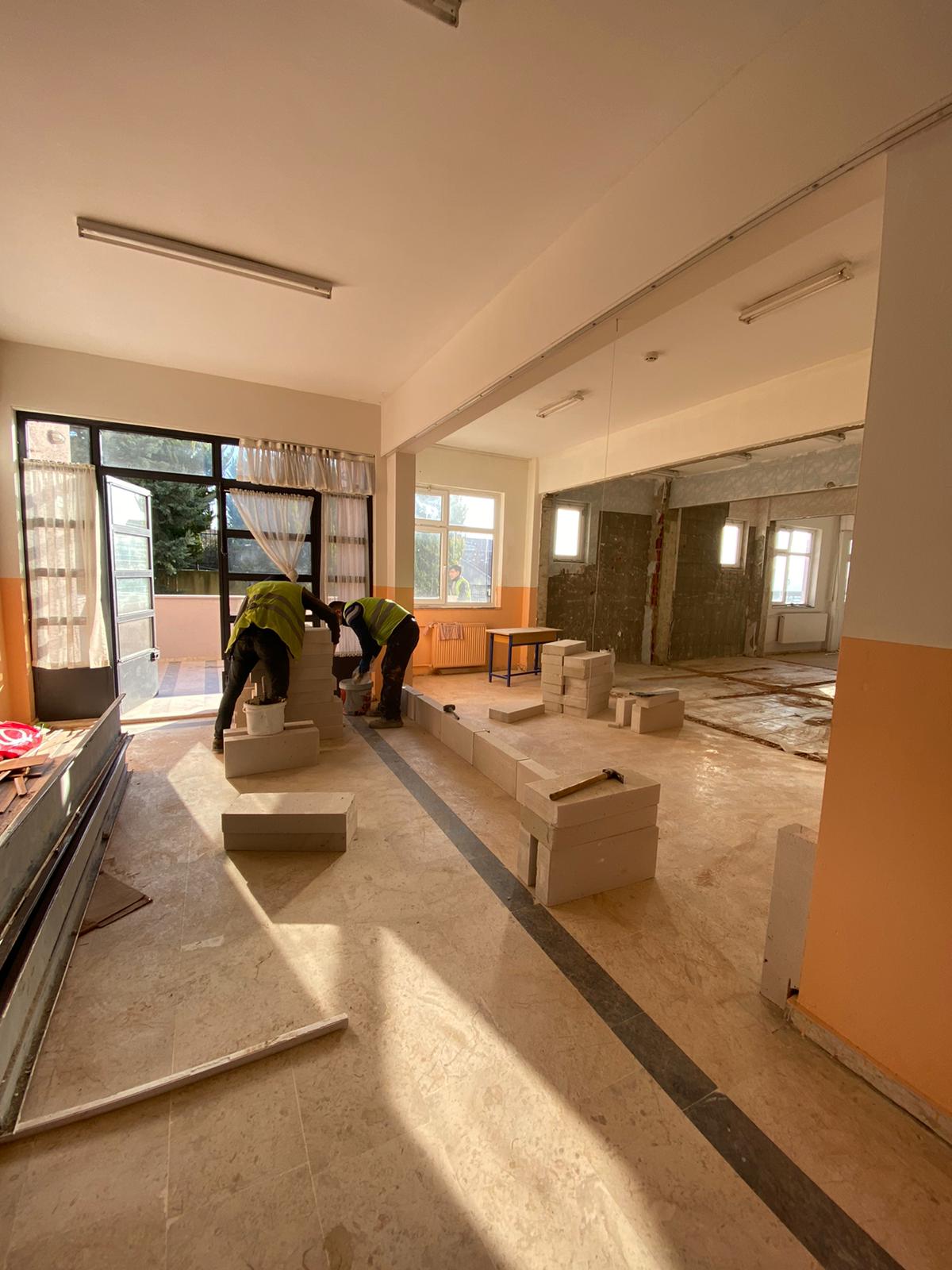 Beykoz’da ilk ve orta dereceli okullarda tüm yurtta olduğu gibi yarıyıl tatilinin ardından ders zili yeniden çaldı. Beykoz Belediyesi başarılı ve sağlıklı nesiller için tatil boyu okullarda mesai yaptı.2019-2020 eğitim öğretim yılında Gündoğdu Nene Hatun Ortaokulu’nun çatısını ve ön cephesini yenileyen, öğrencileri sıcak ve güvenli ortamlara kavuşturan  Beykoz Belediyesi, okula bir konferans salonu kazandırmak için yarıyıl tatilinde hazırlıklara başladı.Mevcutta öğretmenler odası ve tuvalet olarak kullanılan kısım konferans salonu olarak planlandı, buna ek olarak kütüphane, öğretmenler odası ve sınıf için yeni bir proje yapıldı.