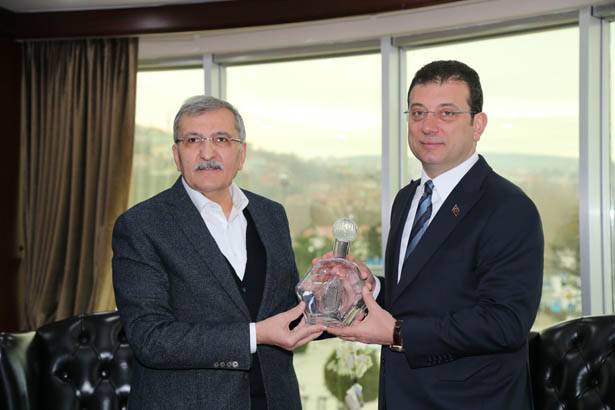 Beykoz Belediye Başkanı Murat Aydın, ziyaretinden dolayı İBB Başkanı İmamoğlu’na teşekkür ederek cam hediye etti.