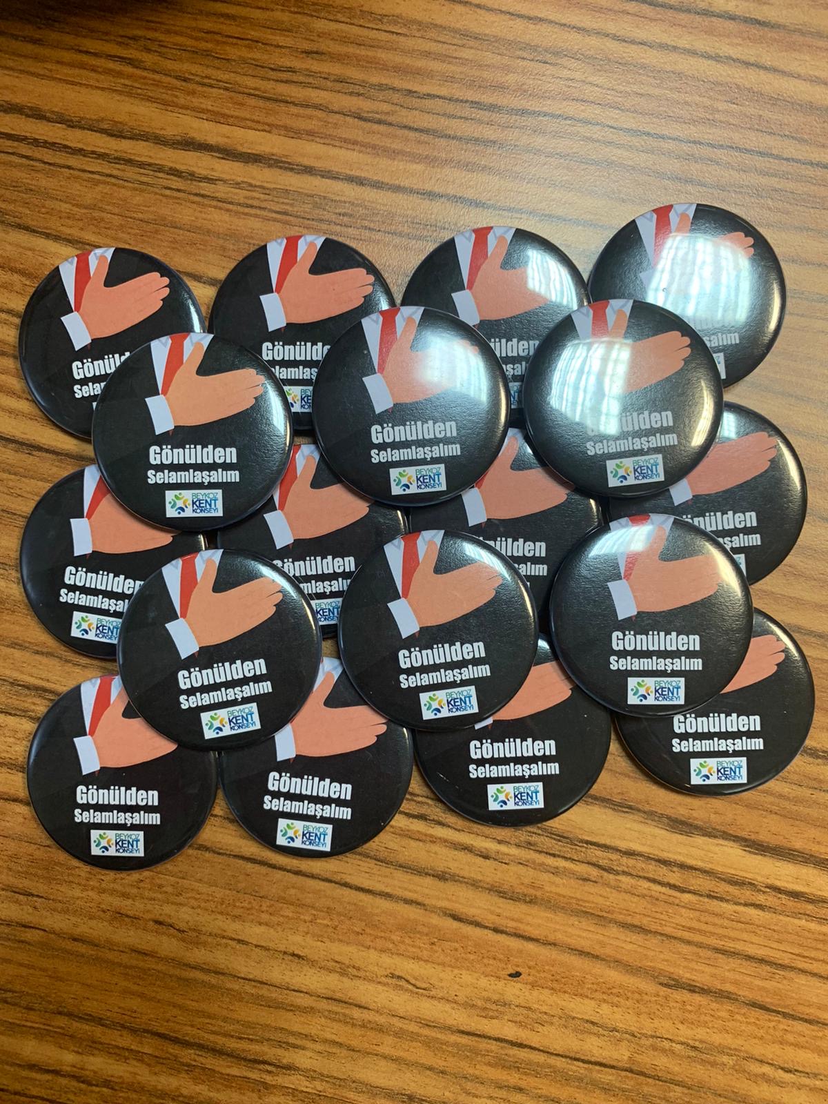 Beykoz Kent Konseyi, koronavirüs bulaşma riskini azaltmak amacıyla insanların birbirlerinden en az 1 metre mesafede durarak sosyal mesafeyi koruması, sarılıp tokalaşmak yerine “gönül selamı” ile selamlaşmayı hatırlatan rozet hazırladı.