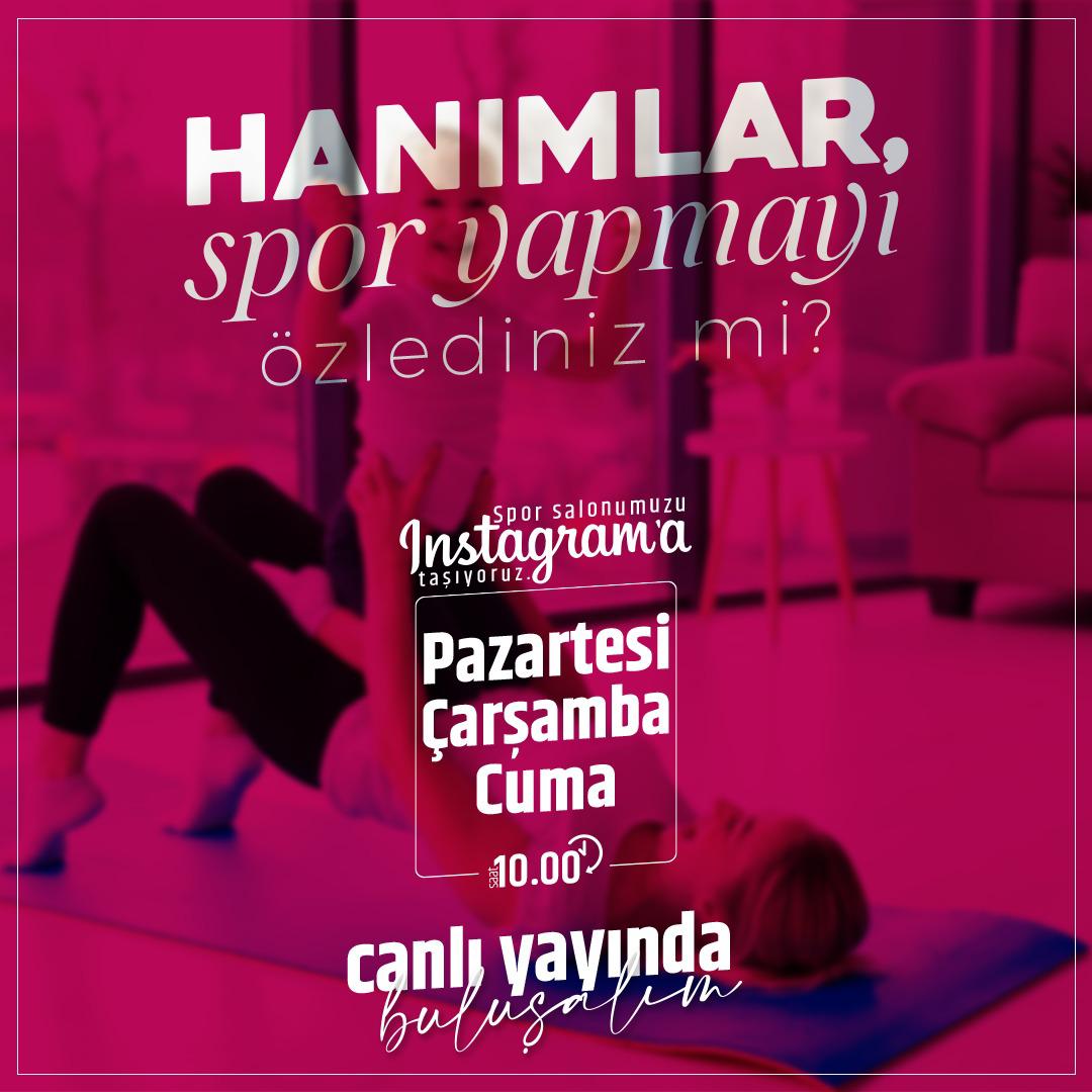 Beykoz Belediyesi’ne ait kadınlara özel spor salonlarının koronavirüs tedbirleri kapsamında geçici bir süre tatil edilmesinin ardından Instagram’da haftada üç gün canlı spor yayını yapılıyor.