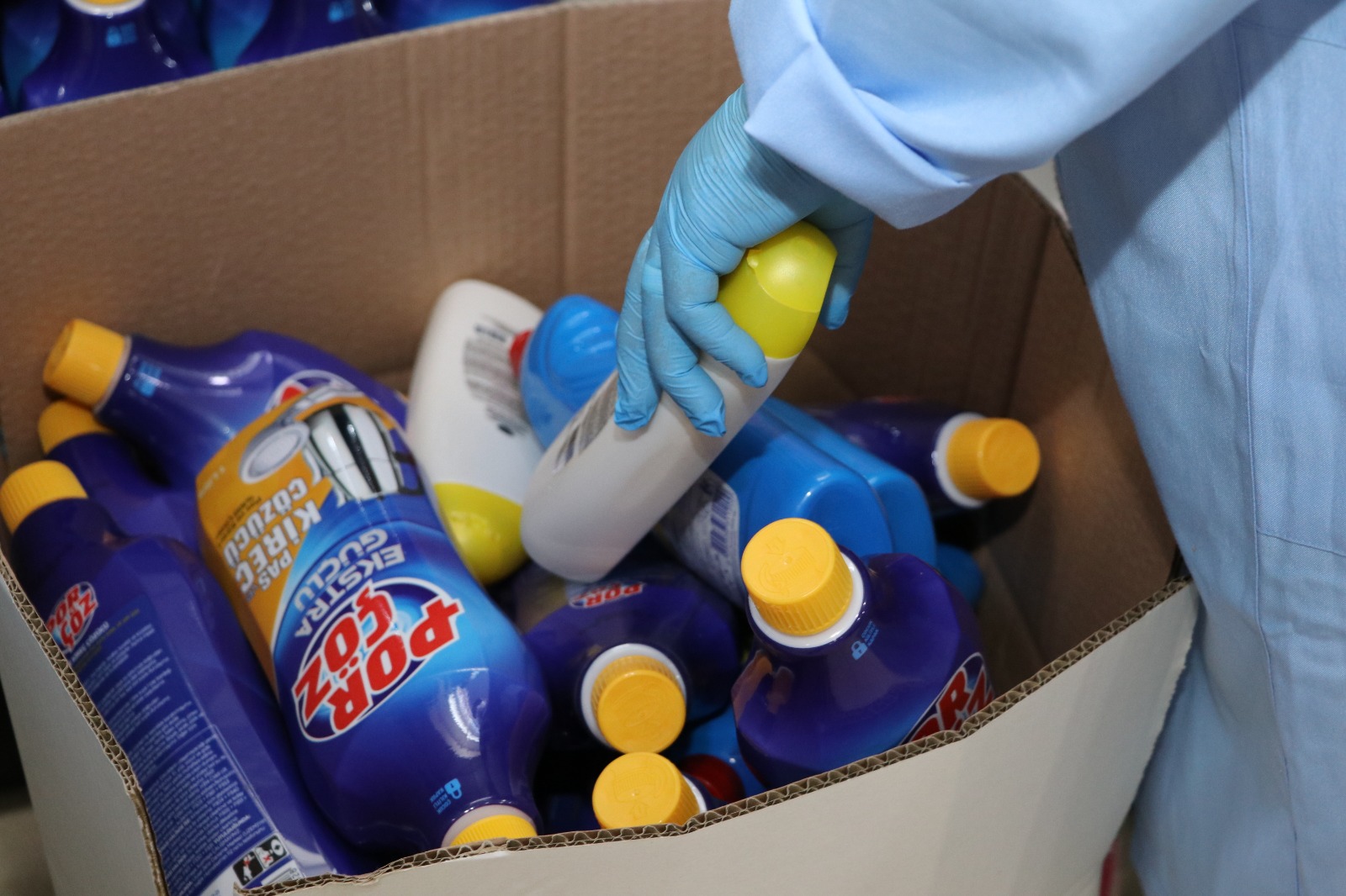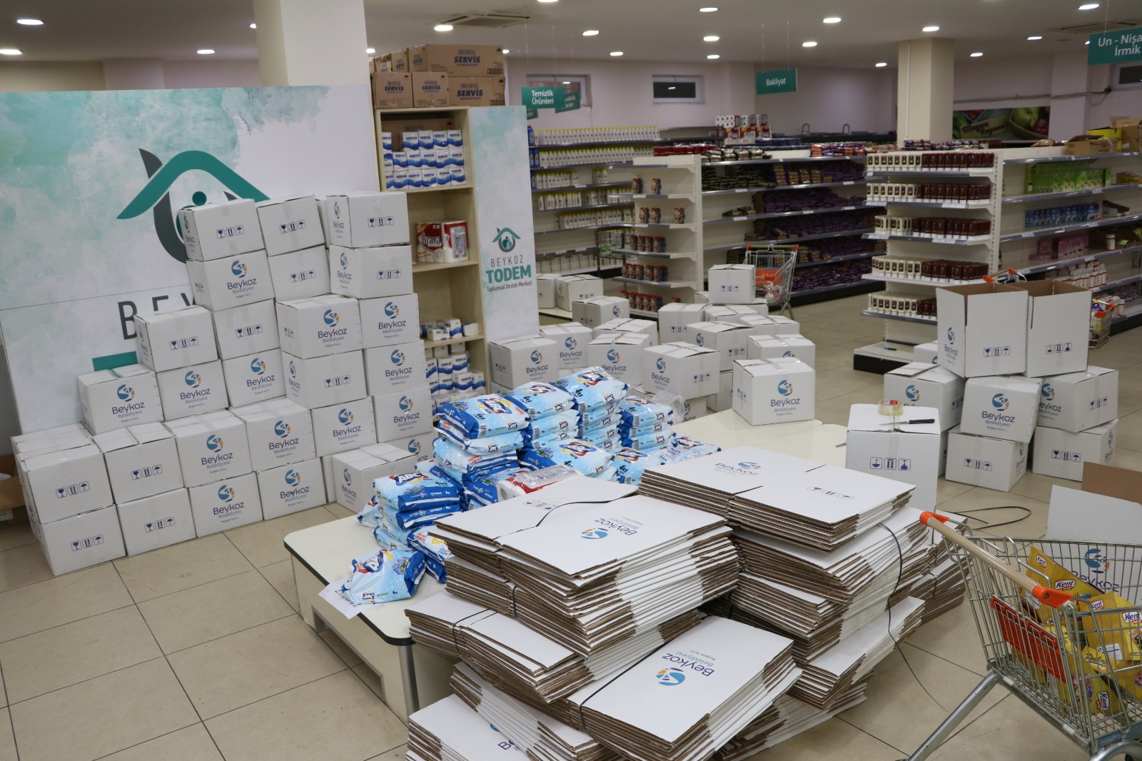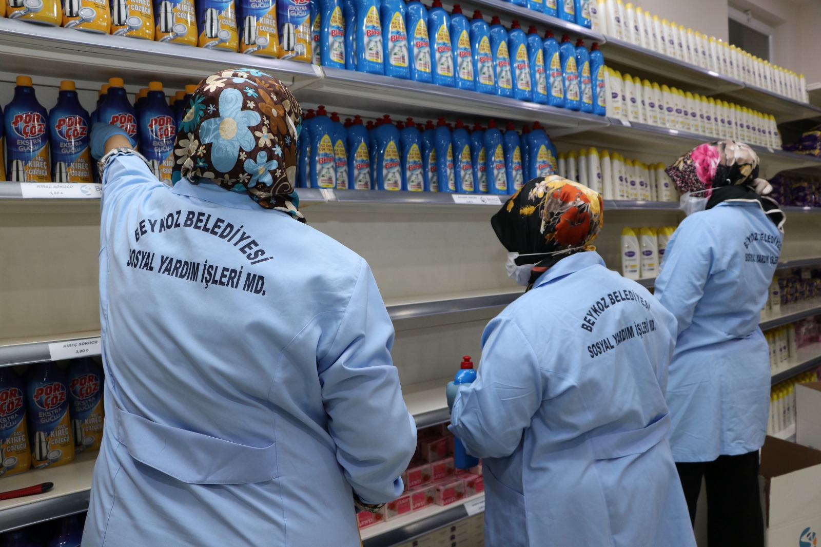 Beykoz Belediyesi’nin Ramazan ayının bereketini ihtiyaç sahibi ailelerle paylaşmak üzere sosyal dayanışma çalışmaları kapsamında hazırladığı kolilerde temel gıda maddeleri ve koronavirüs mücadele sürecine destek için temizlik malzemeleri bulunuyor.