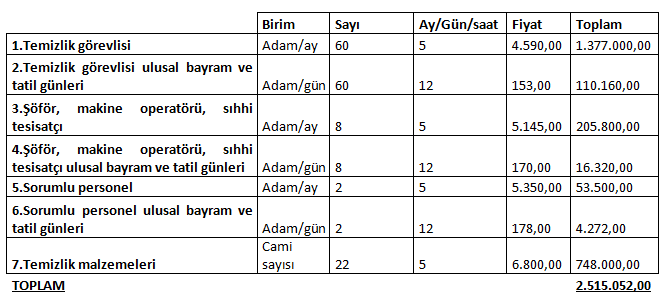 1. İhale: 22 caminin 5 ay 70 işçi ile temizlenmesi