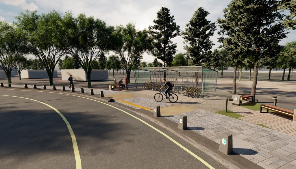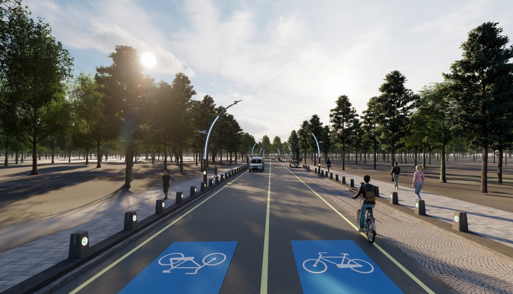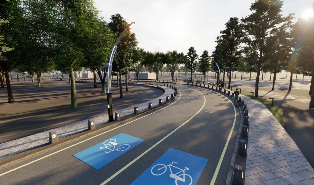 Asfalt serimi ve kaldırım imalatı sonrasında cadde, bisiklet parkları, çiçeklikli oturma bankları ve modern aydınlatma elemanlarıyla şık bir görünüm kazanacak.