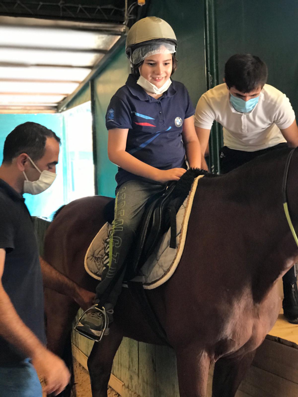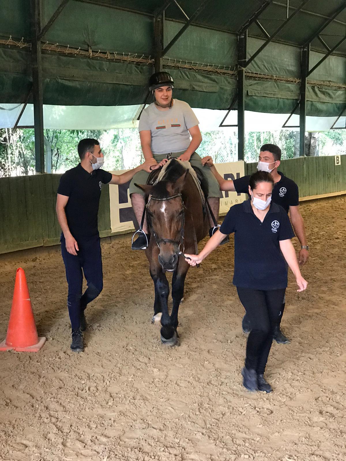 Fizyoterapi uzmanları ve gözetmenler eşliğinde ata binen çocuklar hayvan sevgisi, spor ve oyun    yoluyla tedaviye kolaylıkla adapte oluyor.