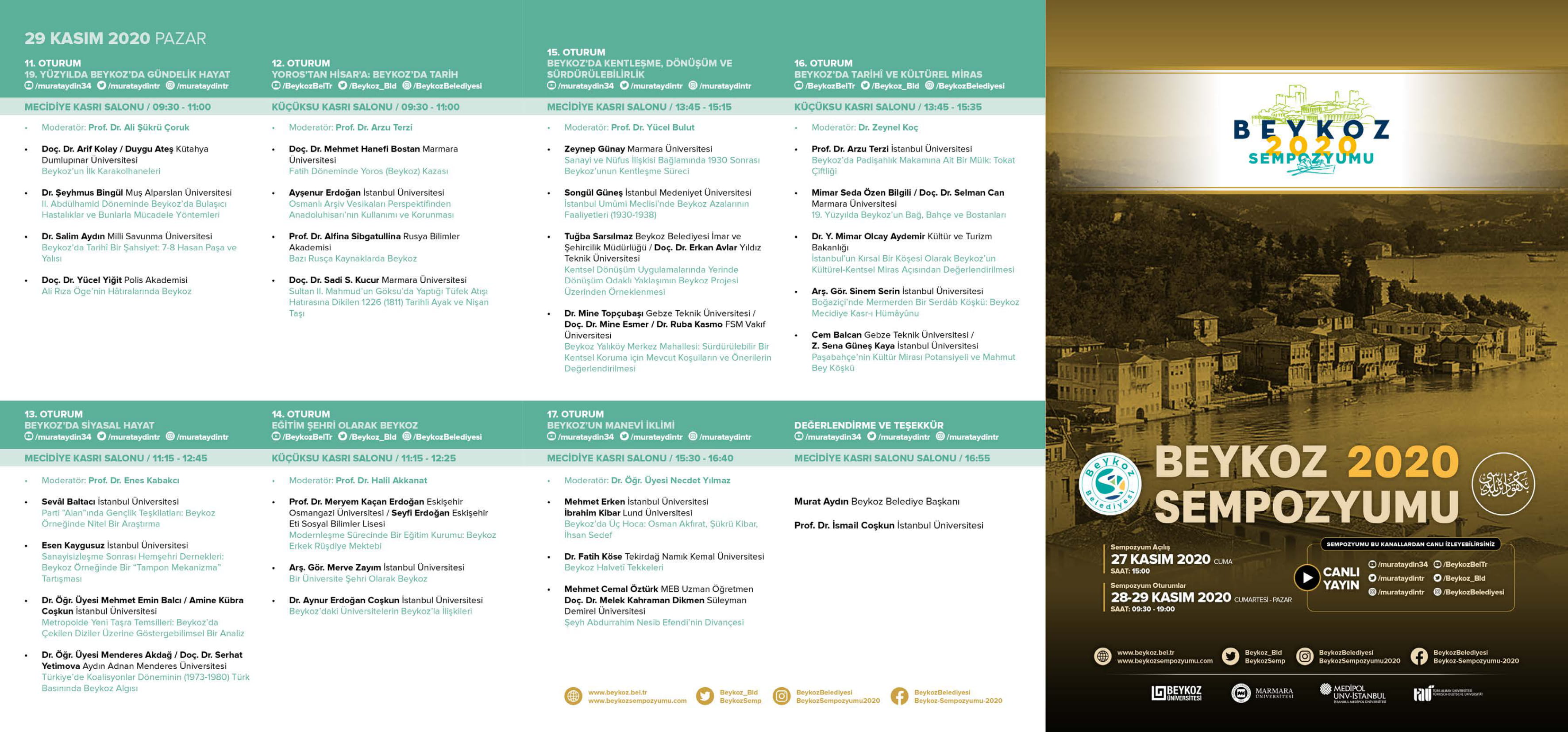 Beykoz 2020 Sempozyumu 27 Kasım Cuma günü başlıyor. Geçen yıl Beykoz konusunda fikri ve hikâyesi olan 103 akademisyen ile uzmanın katıldığı sempozyum, bu yıl 128 akademisyen ve uzmana ev sahipliği yapıyor. Sempozyum, Türkiye’de bu zamana kadar sanal ortamda gerçekleştirilen en büyük organizasyon olacak.