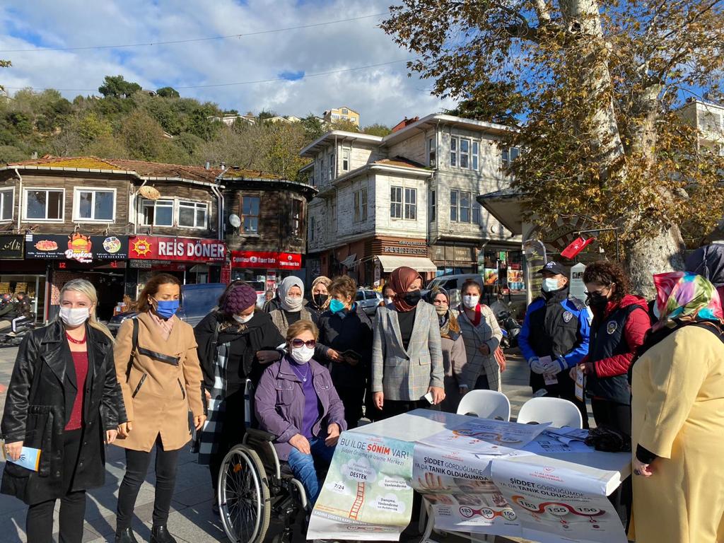 Beykoz Kaymakamı Esengül Korkmaz Çiçekli’nin görevlendirmesi ile 25 Kasım Kadına Yönelik Şiddetle Mücadele Günü kapsamında Beykoz Meydanı’nda ve Otağtepe’ de İlçe Emniyet Müdürlüğü ve İlçe Kaymakamlık personelleri tarafından kadınların acil durumlarda kullanabileceği mobil uygulama olan Kadın Acil Destek İhbar Hattı (KADES) tanıtıldı.