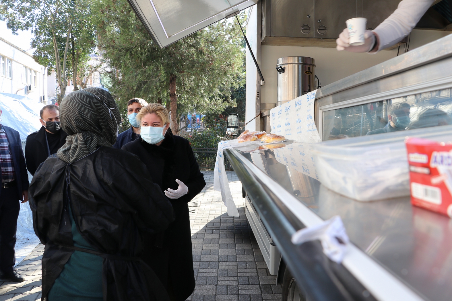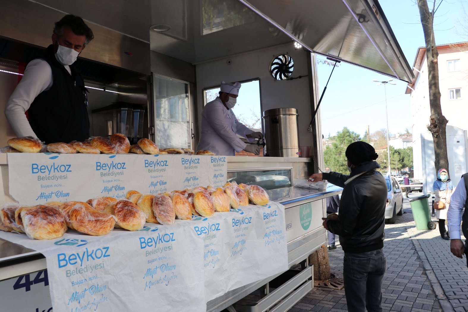 Salgınla mücadelede en ön safta yer alan sağlık çalışanlarına moral vermek amacıyla hazırlanan yöresel yemekler hastane bahçesinde açılan Beykoz Belediyesi’ne ait mobil büfede sağlık personeli ve hasta yakınlarına ikram ediliyor.