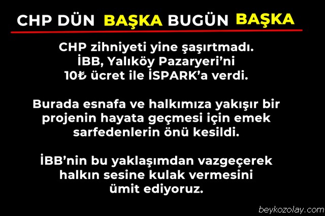 Biz, İBB yönetimini Yalıköy’deki pazaryerimizle ilgili bu akıldışı yaklaşımdan vazgeçmesi konusunda uyarıyoruz. Halkın sesine kulak vermesini ümit ediyoruz.