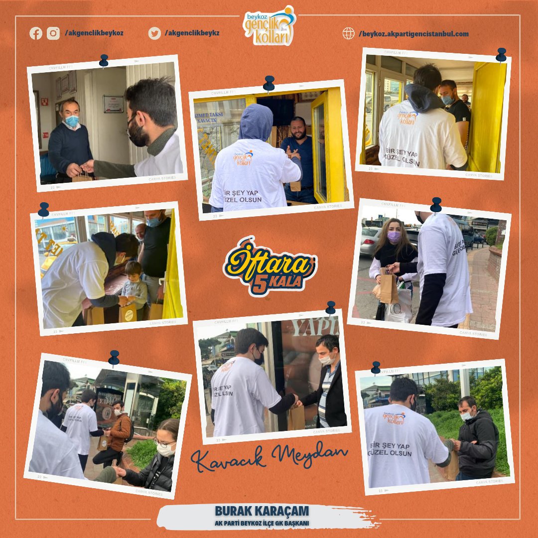 Kavacık Kavşağı’nda ’gerçekleşen etkinlikte konuşan İl Gençlik Kolları Başkanı Osman Tomakin ise “İftara 5 Kala programı bizim gelenekselleştirdiğimiz senelerdir yaptığımız bir program. Kısıtlamaların başlamasıyla daha çok ihtiyaç olduğunu gördük ve programımızı genişlettik. Hem sayı olarak hem nokta olarak İlçe ve İl Gençlik Kollarımız koordinasyonu ile bizim de sahada olduğumuz bir şekilde trafikte, duraklarda, otobüslerde iftara yetişmeye çalışan vatandaşlarımıza ‘İftara 5 Kala’ güzel iftariyeliklerimizi sunuyoruz. Bundan da çok güzel, olumlu geri dönüşler alıyoruz. İnşallah bu güzel çalışmaları bundan sonrada yapmaya devam edeceğiz.” İfadelerini kullandı.