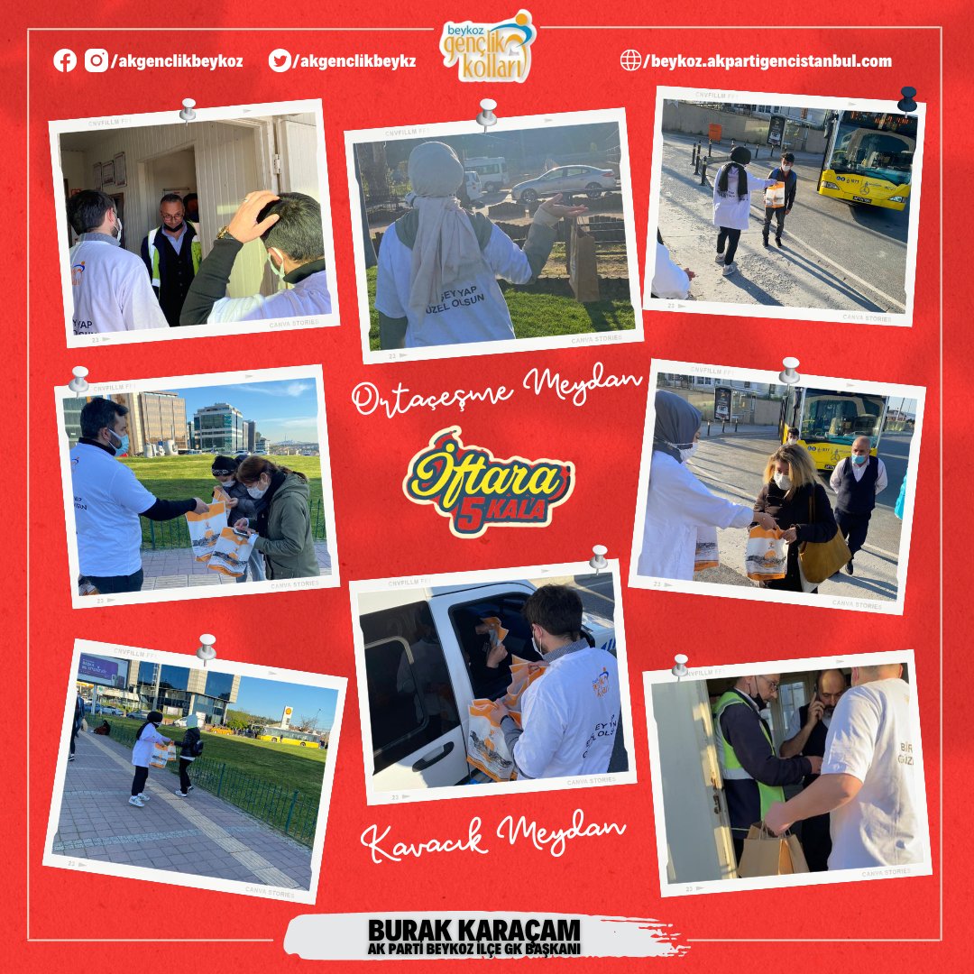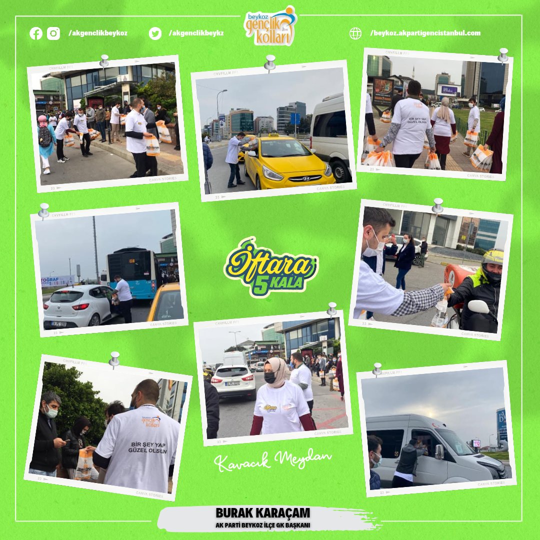 AK Parti Beykoz İlçe Gençlik Kolları Başkanı Burak Karaçam öncülüğünde Beykoz’da hayata geçirilen ‘İftara 5 Kala’ organizasyonu ile trafikte ve otobüs duraklarında iftara yetişemeyen vatandaşlara iftarlık ikramında bulunuldu.