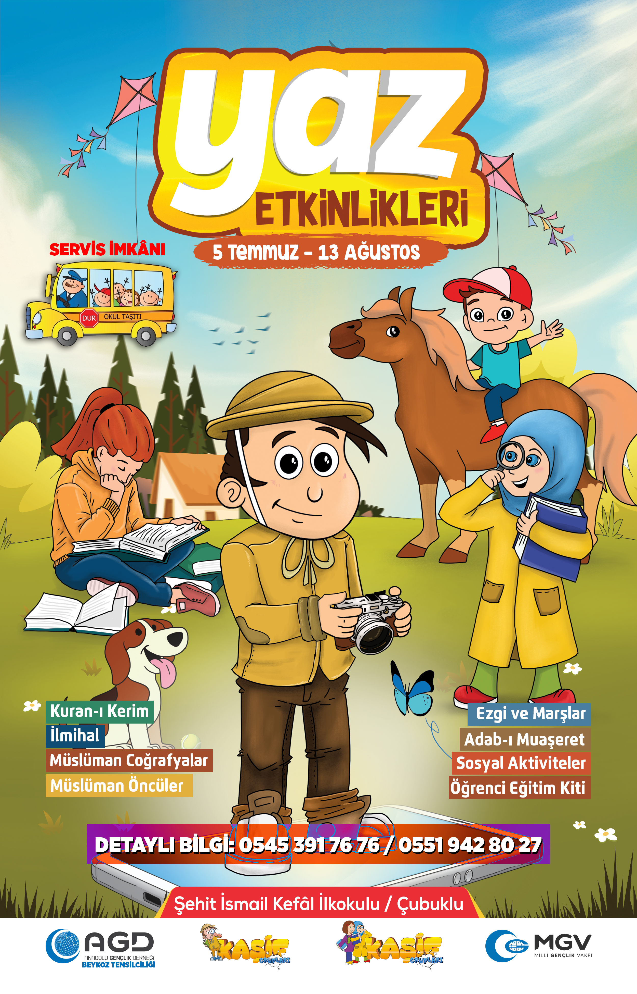 AGD’nin Yaz Etkinlikleri, Kur’an-ı Kerim, ilmihal, adabı muaşeret, Müslüman coğrafyalar ve öncüler, ezgi ve marş gibi dersleri ile öne çıkıyor. Sosyal ve kültürel faaliyetlerin de içerisinde olduğu, öğrencilerin eğlenirken öğrendiği ve tatil dönemini verimli geçirdiği bir etkinlik dönemi olacak.