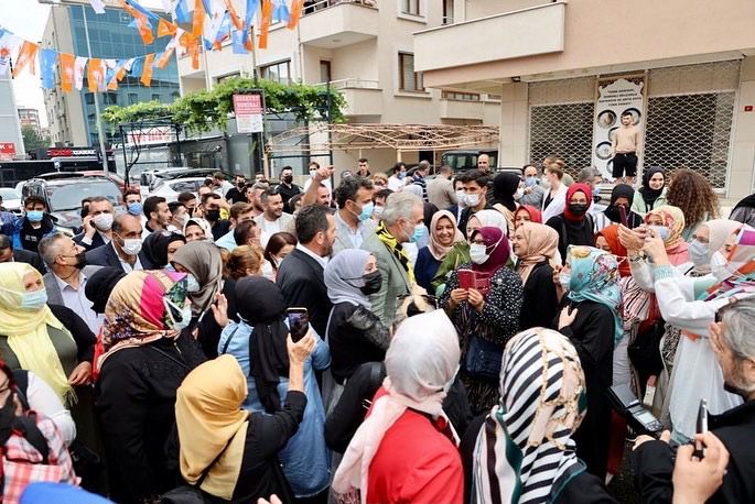 İlçe binası önünde teşkilat mensuplarına seslenen Kabaktepe, “Bizim en önemli cümlemiz ve Cumhurbaşkanımız sürekli söylediği şey şu, biz hep beraber Türkiye’yiz. Bizim partilerimiz farklı olabilir ama hepimiz bu vatanın evladıyız. Son günlerde üzülerek görüyoruz ki bazı muhalefet liderleri toplumu ötekileştiren diller kullanıyorlar. Diyorlar ki aynı masaya oturmayın, selam vermeyin. Bir evde abi ile kardeş bile farklı partilerden olabilir. Bunların arasına dışlayıcı, ötekileştirişi tohumları ekmemelerini rica ediyorum.” diye söyledi.