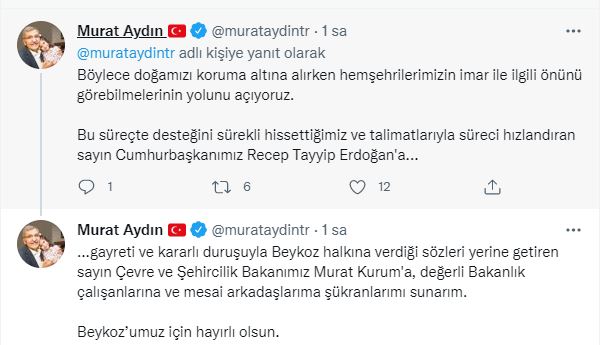 Sosyal medya üzerinden açıklama yapan Beykoz Belediye Başkanı Murat Aydın ise şunları söyledi: