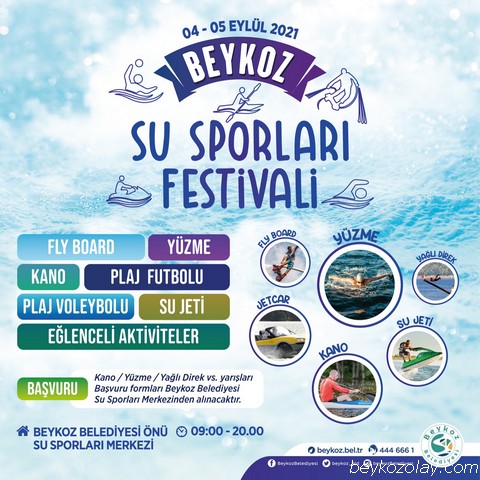 Beykoz Belediyesi Su Sporları Merkezi’nde 4 Eylül Cumartesi başlayacak festivalin ilk gününde halka açık kano, yüzme, yağlı direk ve minder dövüşü yarışları ile flyboard gösterileri yapılacak.