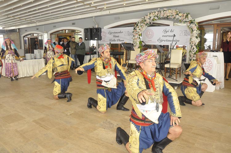 Öğretmenlere çeşitli ödüllerinde verildiği programın akışında mesleğe yeni başlayan eğitimcilerde konukların huzurunda yemin etti. Halk oyunlarının gösterisinin ardından eğitimciler için müzik dinletisi ve kokteyl vardı.