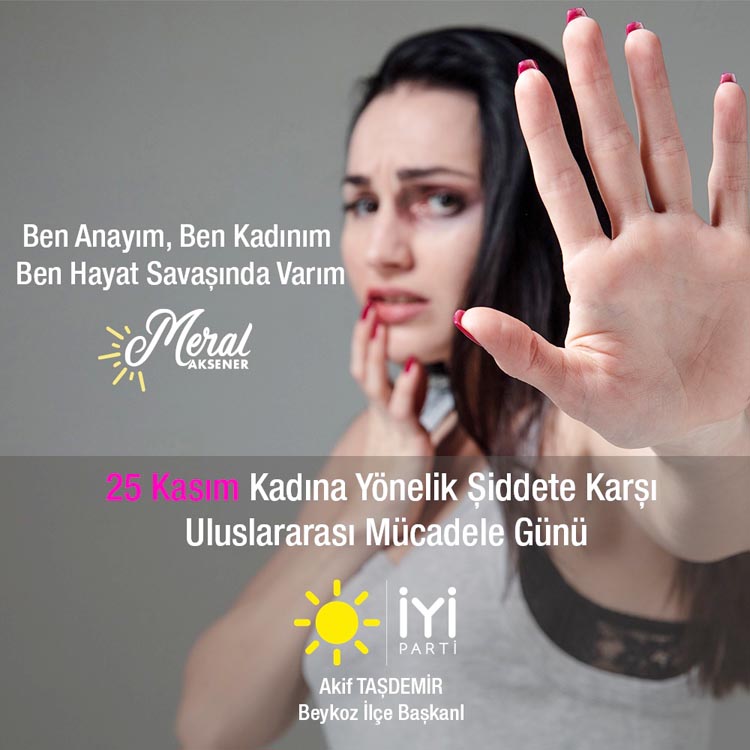 “25 Kasım Kadına Yönelik Şiddete Karşı Uluslararası Mücadele ve Dayanışma Günü” olması sebebiyle İYİ Parti Beykoz İlçe Başkanlığı olarak asla kadın cinayetlerini kabul etmiyoruz. Biz İYİ Parti Beykoz İlçe Başkanlığı olarak kadına yönelik şiddeti asla kabul etmiyoruz.