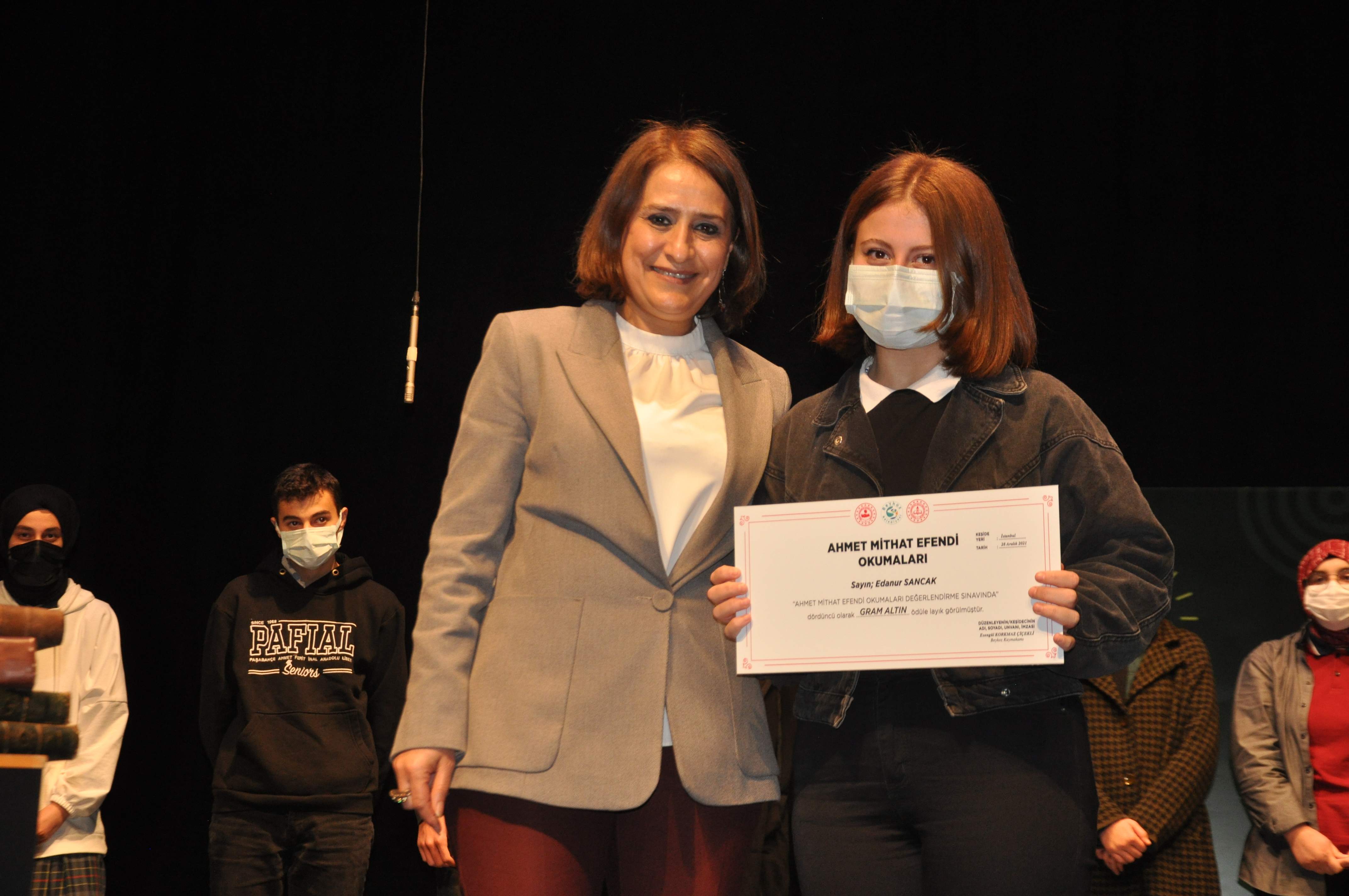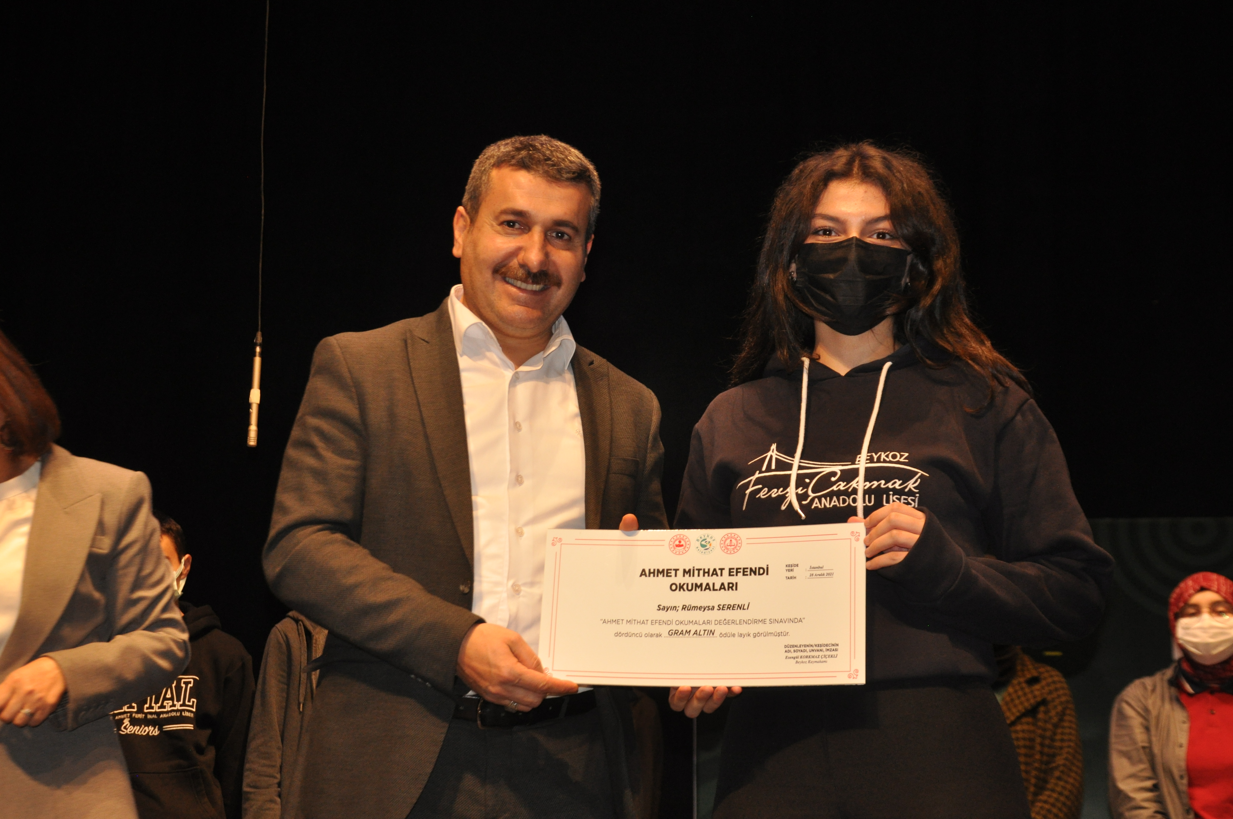 İbrahim Canan Anadolu Lisesi’nden Buse Nur Melek’in birinci olduğu ve tam altın kazandığı yarışmada dereceye giren öğrencilere ödüllerini Beykoz Kaymakamı Esengül Korkmaz Çiçekli ile Beykoz İlçe Milli Eğitim Müdürü Sevcenur Aydın verdi.