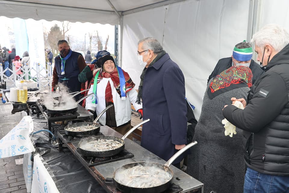 Beykoz Belediyesi’nce organize edilen yaklaşık 3 saat süren hamsi şenliğinde 4 bin 500 kişilik ekmek arası hamsi dağıtıldı.Beykoz Sahil Etkinlik Alanı’nda düzenlenen hamsi şenliğine yüzlerce vatandaş katıldı. Beykoz Belediye Başkanı Murat Aydın’ın da tezgah başına geçerek balık pişirdi ve dağıttı. İlçe sakinleri ikram edilen hamsiden alabilmek için uzun kuyruklar oluşturdu.Soğuk havaya aldırış etmeden uzun süre hamsi kuyruğunda bekleyen vatandaşlar daha sonra sahne alan Karadenizli sanatçı Onay Şahin ile geniş horon halkaları oluşturdu.Düzenlenen hamsi şenliğine Beykoz Kaymakamı Esengül Korkmaz Çiçekli, AK Parti Beykoz İlçe Başkanı Muhammed Hanefi Dilmaç, Beykoz Belediye Başkanı Murat Aydın ve Yardımcıları, Meclis Üyeleri, muhtarlar, STK temsilcileri ve çok sayıda vatandaş katıldı.Onay Şahin’in sahne aldığı hamsi şenliğinde vatandaşlara 4 bin 500 kişilik ekmek arası hamsi, helva ve su ikram edildi. Kurulan pişirme alanlarında tavada pişirilen hamsileri, vatandaşların aileleriyle birlikte uzun süre sırada bekleyerek almaları dikkati çekti.Uzun süre sahnede kalarak Beykozlu vatandaşları eğlendiren Onay Şahin, kendisiyle fotoğraf çekilmek isteyen ilçe sakinlerini de geri çevirmedi. Ünlü sanatçı Karadeniz’e özgü türküleriyle Beykozlulara unutulmaz bir gün yaşatırken, zaman zaman horon halkasına karıştı.Beykoz Belediye Başkanı Murat Aydın, İlçe Başkanı Hanefi Dilmaç ile beraber vatandaşları tek tek selamladı.