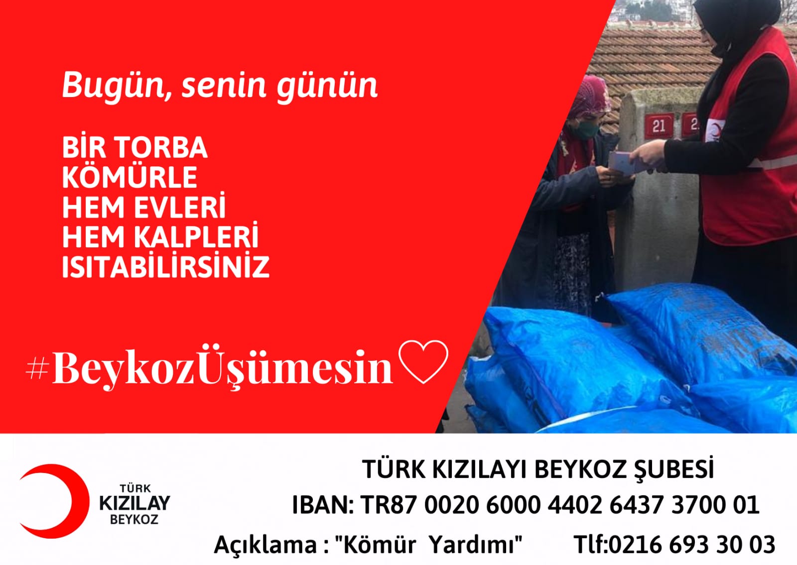 Türk Kızılayı Beykoz Şubesi, “Beykoz Üşümesin” kampanyasıyla ihtiyaç sahibi ailelere kömür yardımında bulunacak.