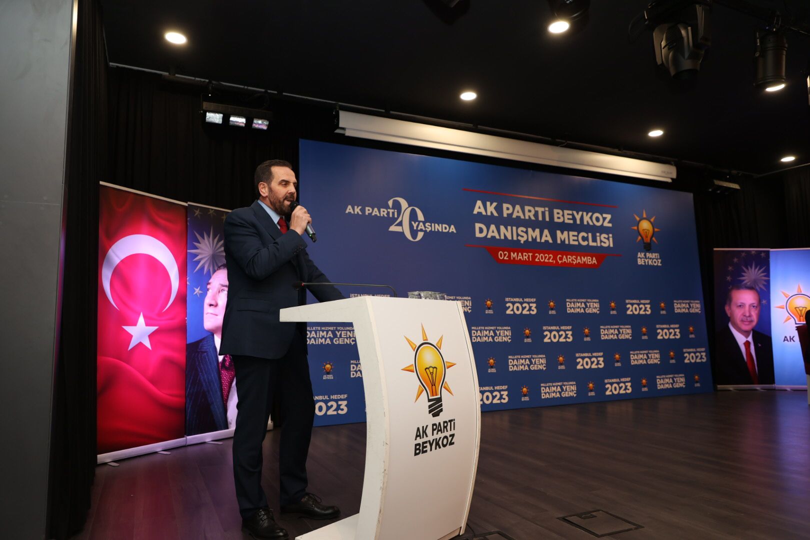 AK Parti Beykoz İlçe Başkanlığı Yerel Yönetimler Danışma Meclisi, AK Parti İstanbul İl Başkanı Osman Nuri Kabaktepe’nin katılımıyla coşkulu bir şekilde gerçekleşti.AK Parti Beykoz İlçe Başkanlığı’nın Yerel Yönetimler Danışma Meclisi, teşkilat mensuplarının doldurduğu salonda şölen havasında geçti. Toplantıya, AK Parti İstanbul İl Başkanı Osman Nuri Kabaktepe de katıldı.Yücel Çelikbilek Gençlik Merkezi’nde düzenlenen toplantıya, AK Parti İstanbul İl Başkanı Osman Nuri Kabaktepe’nin yanı sıra, İl Başkan Yardımcıları İsmet Öztürk, Maliki Ejder Batur, Gıyaseddin Gergin ve Ahmet Kaan, AK Parti Beykoz İlçe Başkanı Muhammed Hanefi Dilmaç, Beykoz Belediye Başkanı Murat Aydın ile üç kademe teşkilat mensupları, belediye başkan yardımcıları, meclis üyeleri ve mahalle teşkilat üyeleri katıldı.Toplantının Divan Kurulu Başkanlığını Yerel Yönetimler Birim Başkanı Murat Yumurtacı yaptı. Danışma Meclisi’nin Divan Üyeliğini ise Kadın Kolları Yerel Yönetimler Birim Başkanı Şengül Kayacı, Gençlik Kolları Yerel Yönetimler Birim Başkanı Ömer Sait Korkmaz, Meclis Üyesi Nazım Keskin ve Riva Mahalle Başkanı Murat Taşçı oluşturdu.Saygı duruşu ve İstiklal Marşı’nın ardından, İlçe Başkanı Muhammed Hanefi Dilmaç, açılış konuşması gerçekleştirerek partililere hitap etti.  İlçe Başkanı Muhammed Hanefi Dilmaç, sözlerine başlamadan önce Beykoz Teşkilatı’nın yapmış olduğu tüm etkinliklerde kendilerini yalnız bırakmayan İl Başkanı Osman Nuri Kabaktepe’ye teşekkürlerini iletti.“NETİCESİNİ SAHADA GÖRÜYORUZ”
