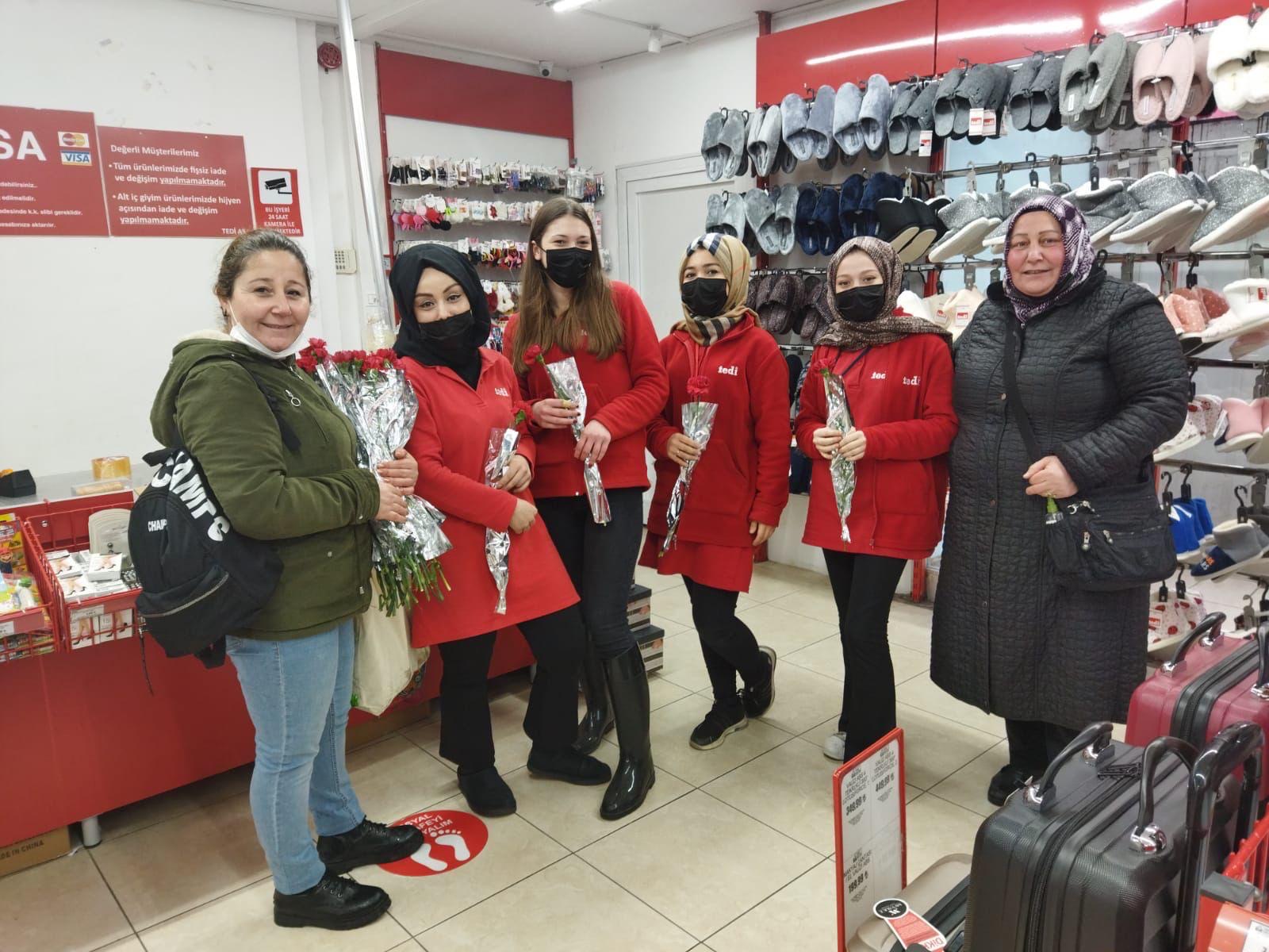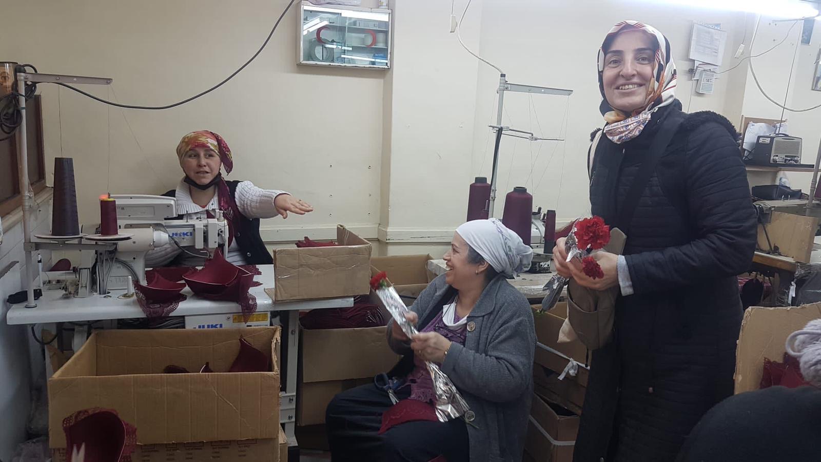Beykoz’un farklı mahallerine gerçekleştirilen ziyaretlerde 200 kadın çalışana karanfil takdim edildi ve günlerini kutlandı.