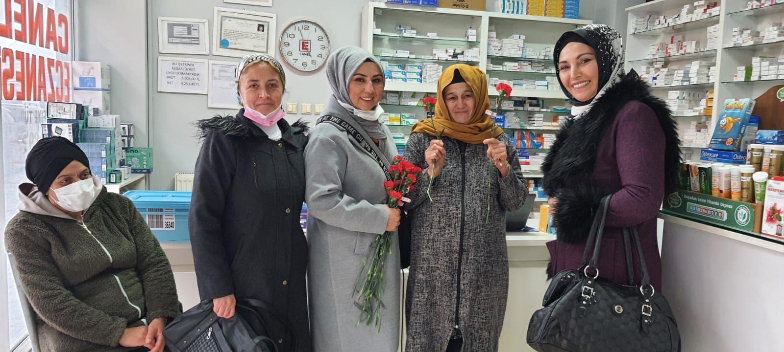 İlçe Başkanı Muhammed Hanefi Dilmaç ve Kadın Kolları Başkanı Gaye Zayıf ile kadın kolları teşkilat mensupları ve meclis üyeleri, kamu ve özel kurum kuruluşlarındaki, tekstil atölyelerindeki ve çeşitli işyerlerindeki çalışan kadınlarla bir araya geldi.