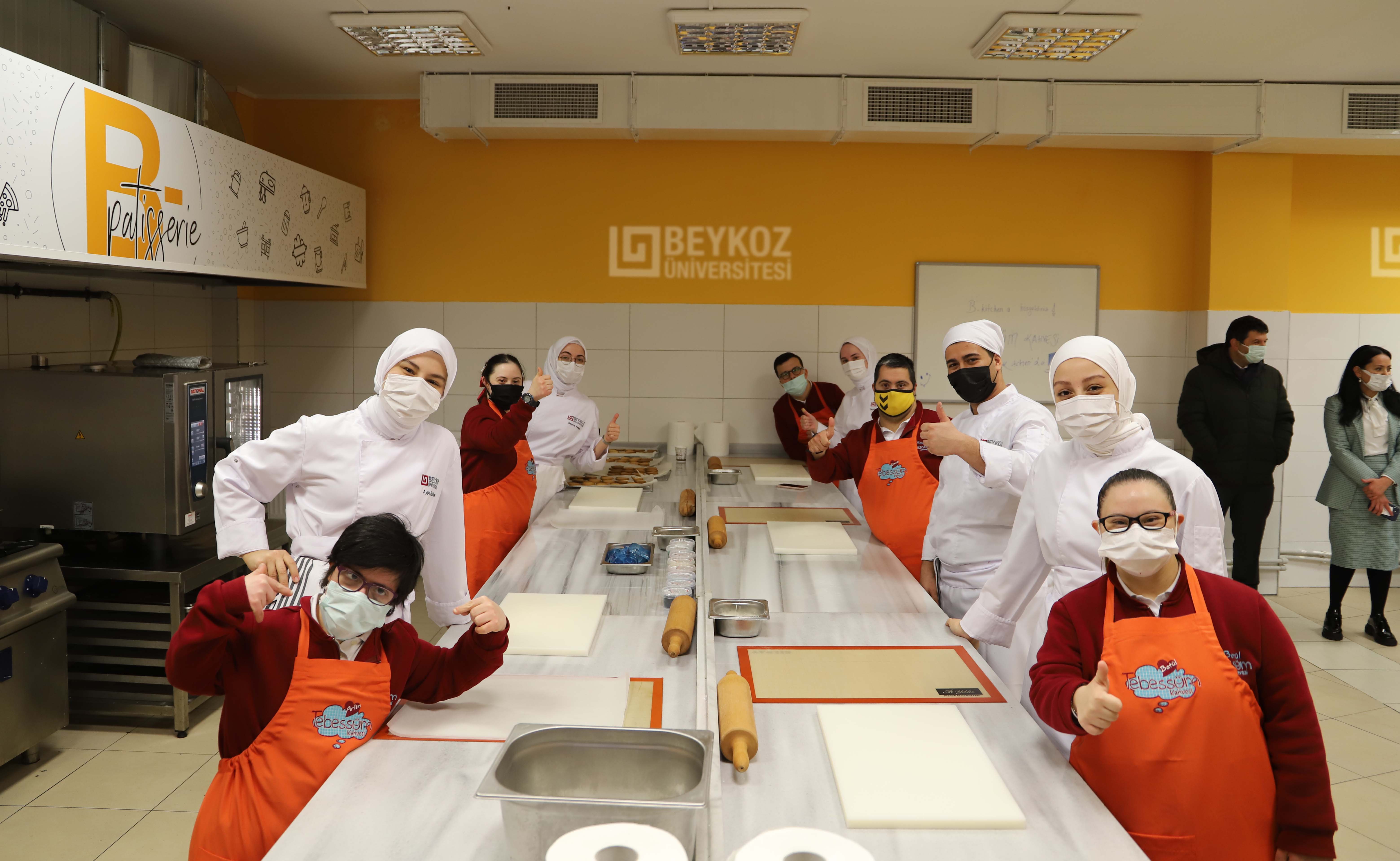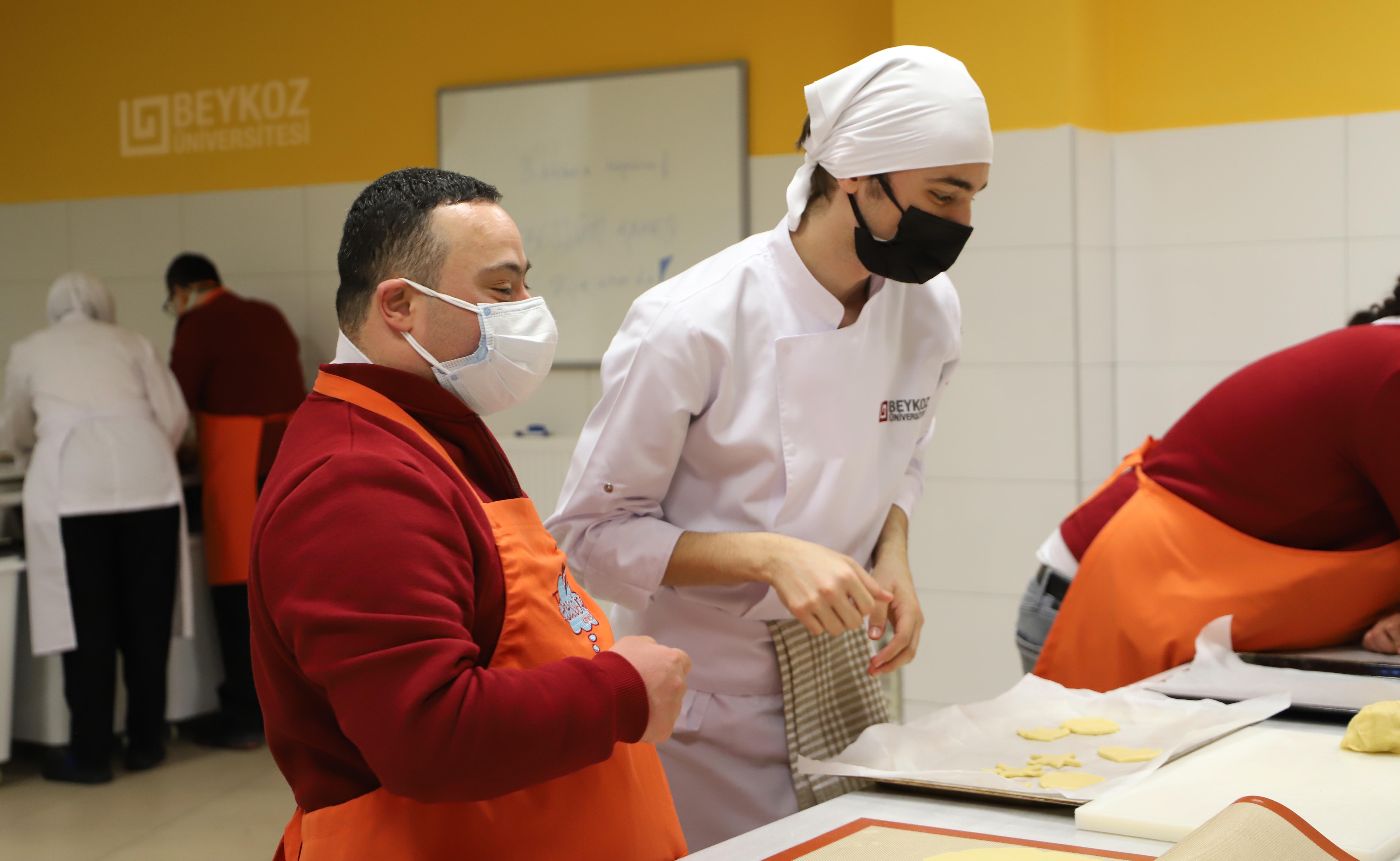 Beykoz Üniversitesi Sanat ve Tasarım Fakültesi Gastronomi ve Mutfak Sanatları öğrencileri Down sendromlu gençlerle birlikte ilk önce kurabiye hamurunu şekillendirdiler. Ardından kurabiyeleri süsleyen gençler, hazırladıkları kurabiyeleri birbirlerine ve beraber çalıştıkları öğrencilere ikram ettiler. Üsküdar Belediyesi Tebessüm Kahvesi’nde çalışan Down sendromlu gençler, yalnızca serviste değil aynı zamanda desteklendiğinde mutfakta ürettikleriyle de çok güzel işler başardıklarını gösterdiler.