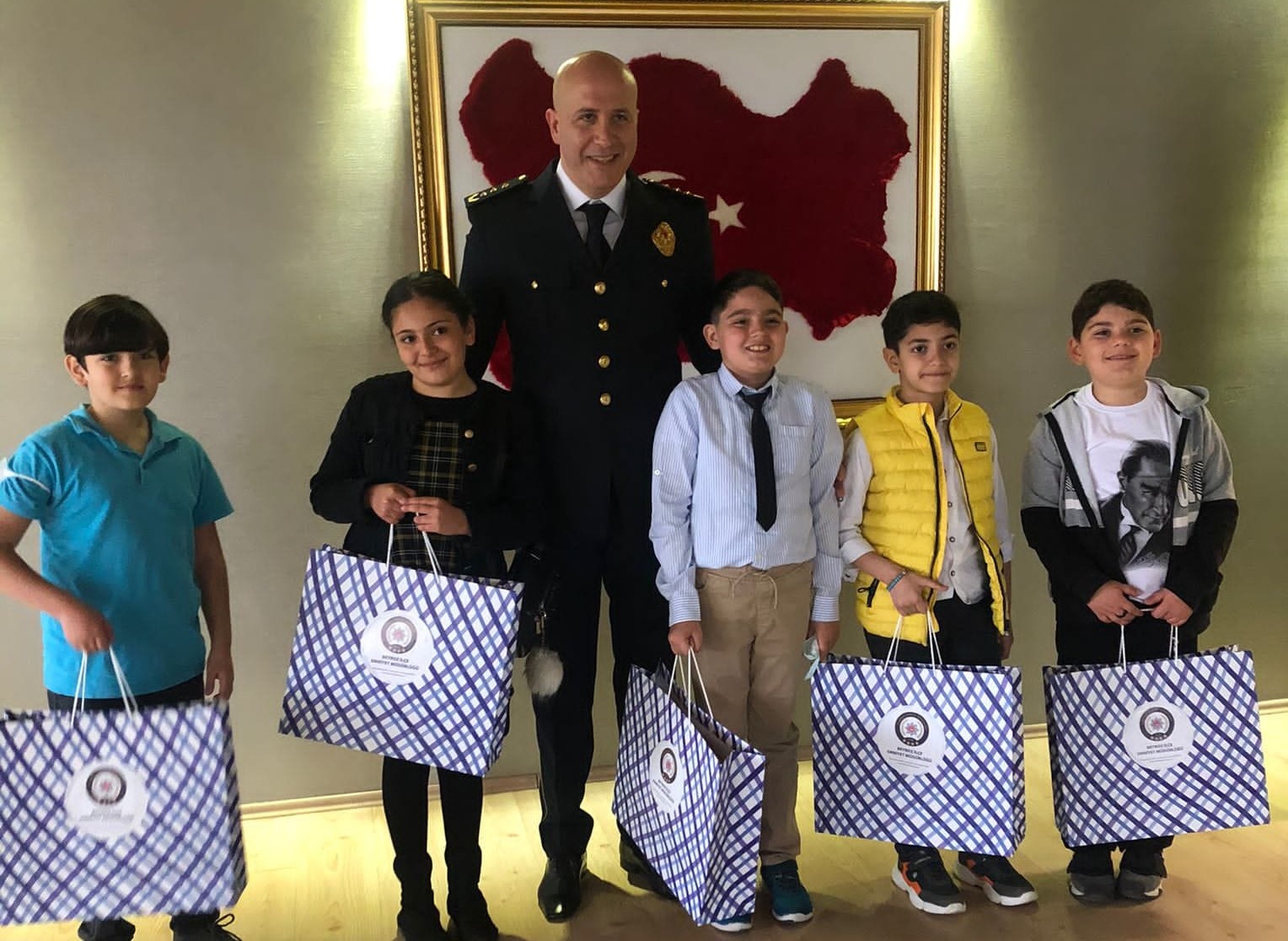 Öğrenciler, 23 Nisan Egemenlik ve Çocuk Bayramı nedeniyle Beykoz idari erkanını ziyaret etti.Bu program kapsamında ise Mehmet Emin Pulat Konak İlkokulu öğrencileri de İlçe Emniyet Müdürlüğüne bir ziyaret gerçekleştirdi.İlçe Emniyet Müdürü Hüseyin Güleç’i makamında ziyaret eden çocuklar, emniyet müdürü ile birlikte keyifli vakit geçirdi. Kendi yapmış oldukları resimleri yanlarında getirerek vermiş oldukları Emniyet Müdürü Hüseyin Güleç’e çeşitli sorular soran çocuklar makamda olmaktan oldukça memnun gözüktü.Müdür Güleç’in makamına oturan öğrenciler, temsili olarak emniyet mensuplarına çeşitli talimatlar verirken, müdür Güleç ise çeşitli hediyeler vererek çocukları mutlu etti. Çocuklarla bir süre sohbet eden Beykoz İlçe emniyet Müdürü Hüseyin Güleç daha sonra onlarla günün anısına hatıra fotoğrafı çektirdi.Öğretmenler ise Beykoz İlçe Emniyet Müdürlüğünde ağırlanmaktan son derece mutlu olduklarını dile getirdi.