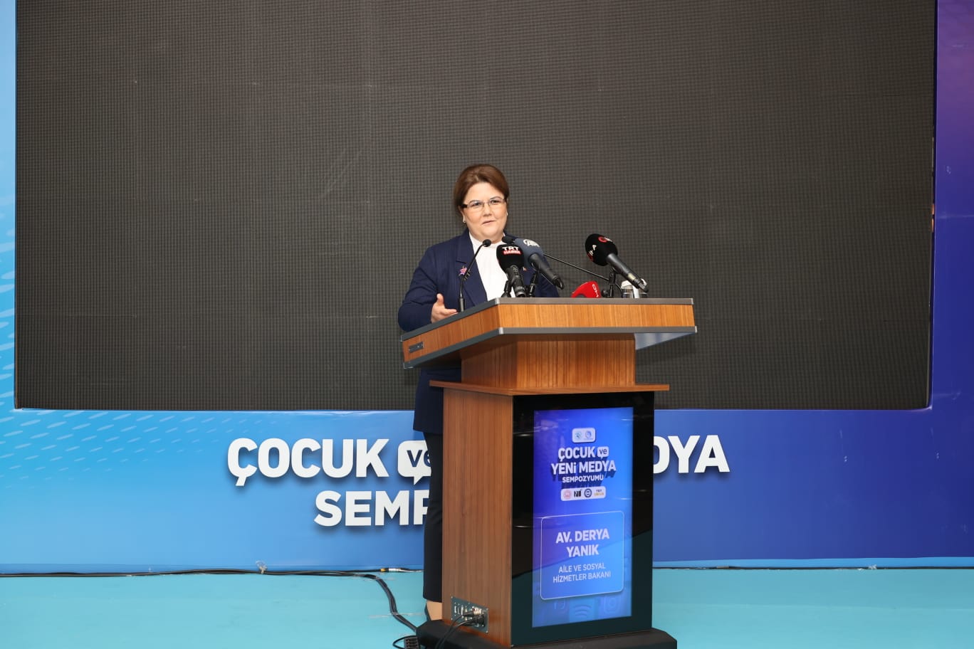 Sağlıklı dijital nesillere yol gösterici olması hedeflenen sempozyumun açılışında konuşan Aile ve Sosyal Hizmetler Bakanı Derya Yanık: “Bakanlık olarak çocuk ve yeni medya konusunda çalışmaya başladık. İnternet kullanımı son 25 yıla göre arz odaklı hale geldi. Her enstrümanın tehdit ve fırsatları vardır. Biz tehditleri bertaraf ederek faydalı yönlerini kullanmalıyız. Bunları çocuklarımızı da aşılamalıyız. Bundan sonra bu çocukların bu ekranlardan yanlış eğitilmesini önlemek zorundayız. Dijital mecraların kötü mayalayıcı etkisi olabiliyor. Çocuklarımız için diğer bir tehditte sosyalleşmelerini sosyal medya üzerinden yapıyor olmalıdır. Dolayısıyla bu anlamda çocukların sosyalleşme ihtiyaçlarını karşılayabileceği alanlar kurmamız gerekiyor” dedi.