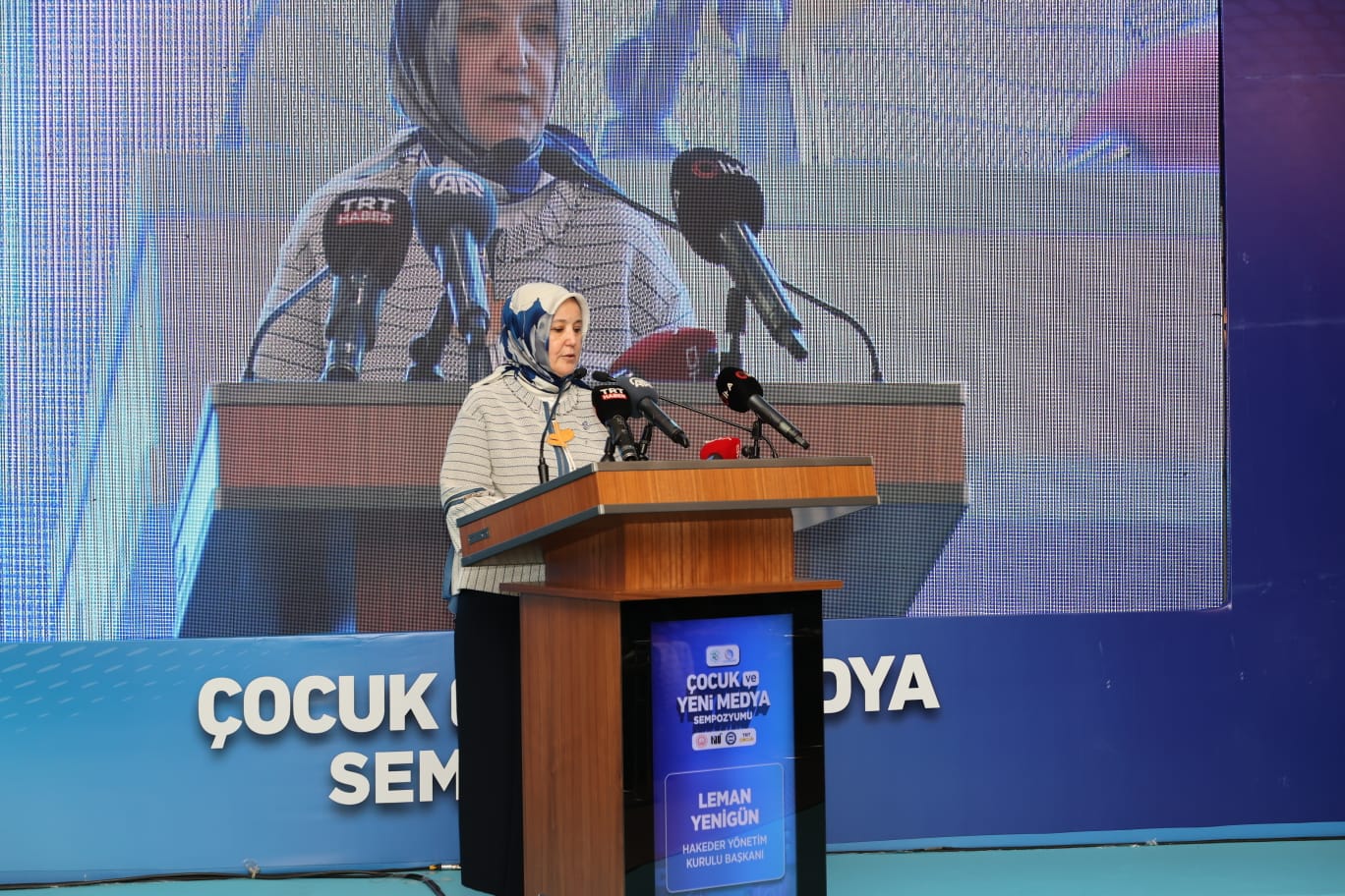 HAKEDER Derneği Yönetim Kurulu Başkanı Leman Yenigün ise: “Yeni medya çağı hayatımızda köklü şekilde değişiklikler yapıyor. Bu değişimden dijital yerliler olarak da ifade edilen geleceğimizin emanetçisi çocuklarımız ayrıca etkileniyor. Genelde ebeveynler bilir ve öğretici olurlar. Bu günümüzde tam geçerli olamıyor ve dijital çağın bir handikabı olarak önümüzde duruyor. Sanal gerçeklik, Plato’nun gölge dünyası gibi gölgenin gölgesini sunuyor. Dijital dünyada direksiyon hakimiyetini kaybetmemek gerekiyor. Bu sempozyumla yönümüzü doğru belirlemeyi amaçlıyoruz.” diyerek sempozyumun hedefini vurguladı.