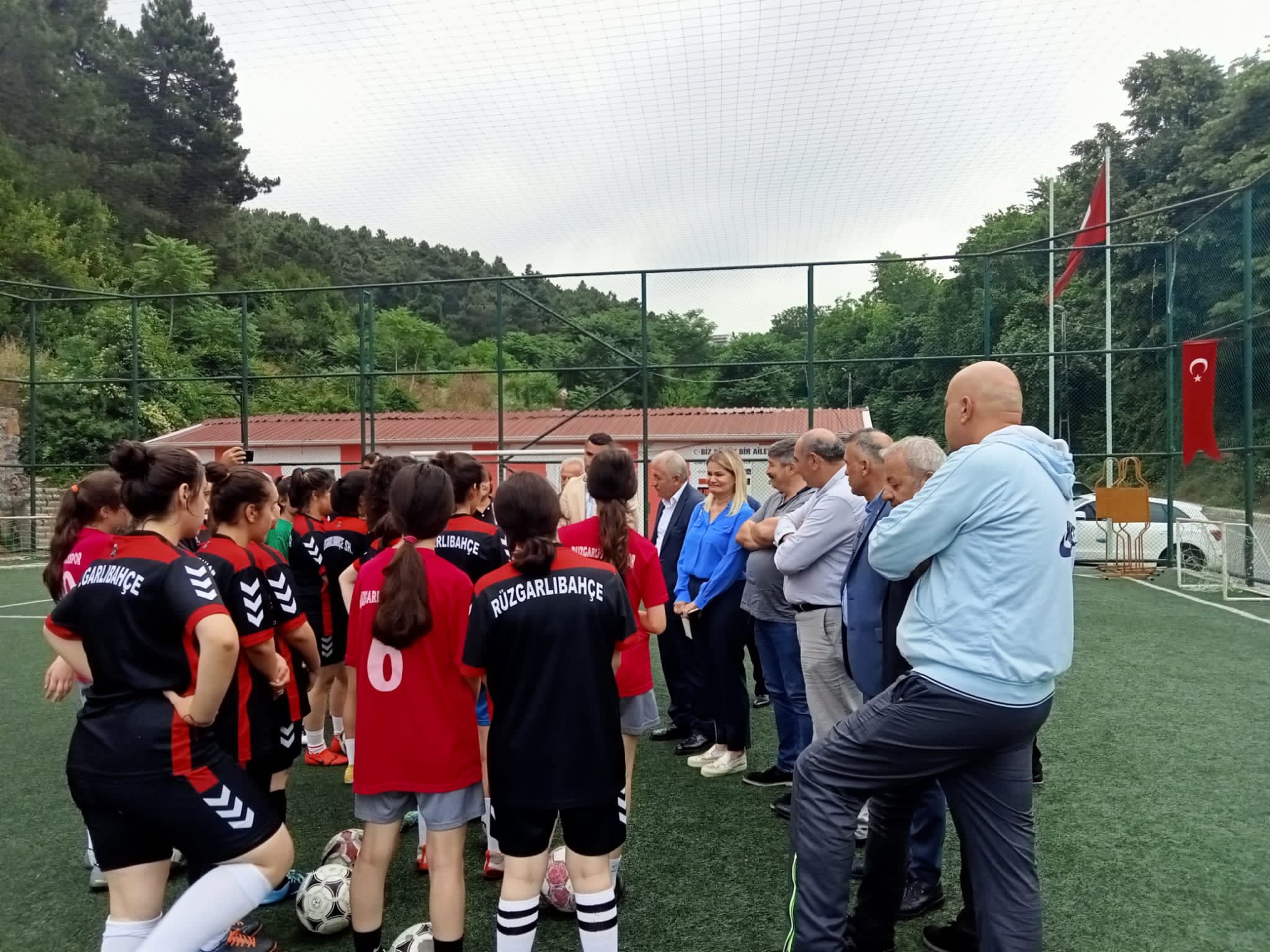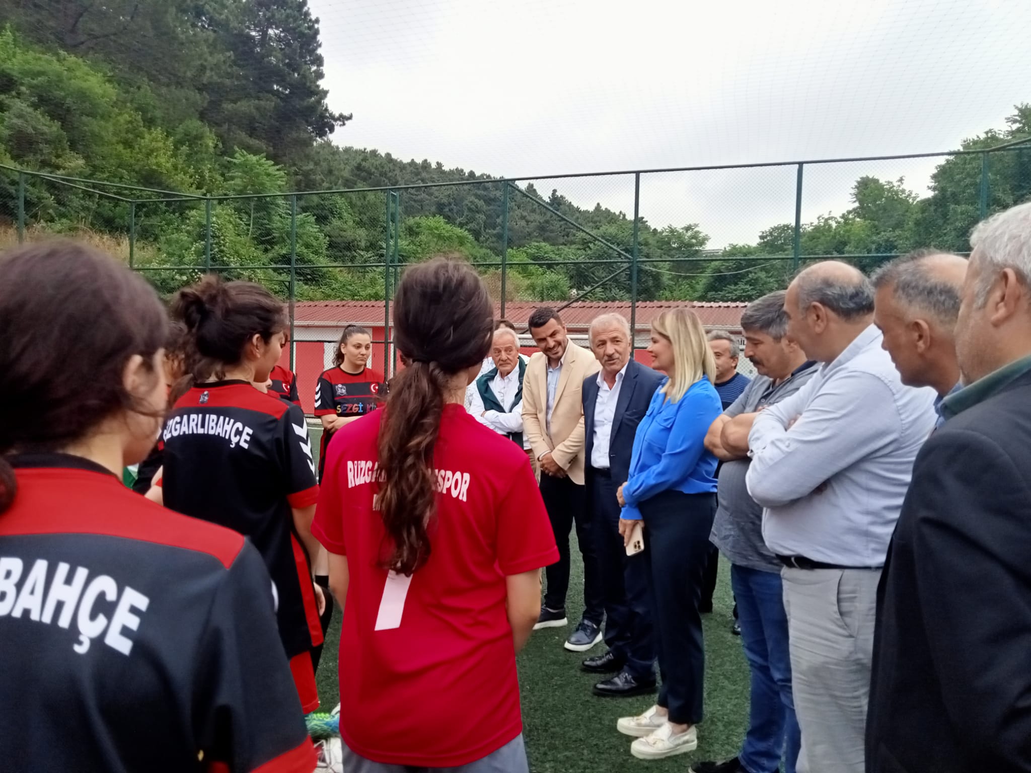 Rüzgarlıbahçespor Tesislerine yapılan ziyarette antrenman yapan Kulüp Genç Kız Futbol Takımı sporcuları ile de bir araya gelen İyi Parti Heyeti maçlarında başarı dileklerinde bulundu.