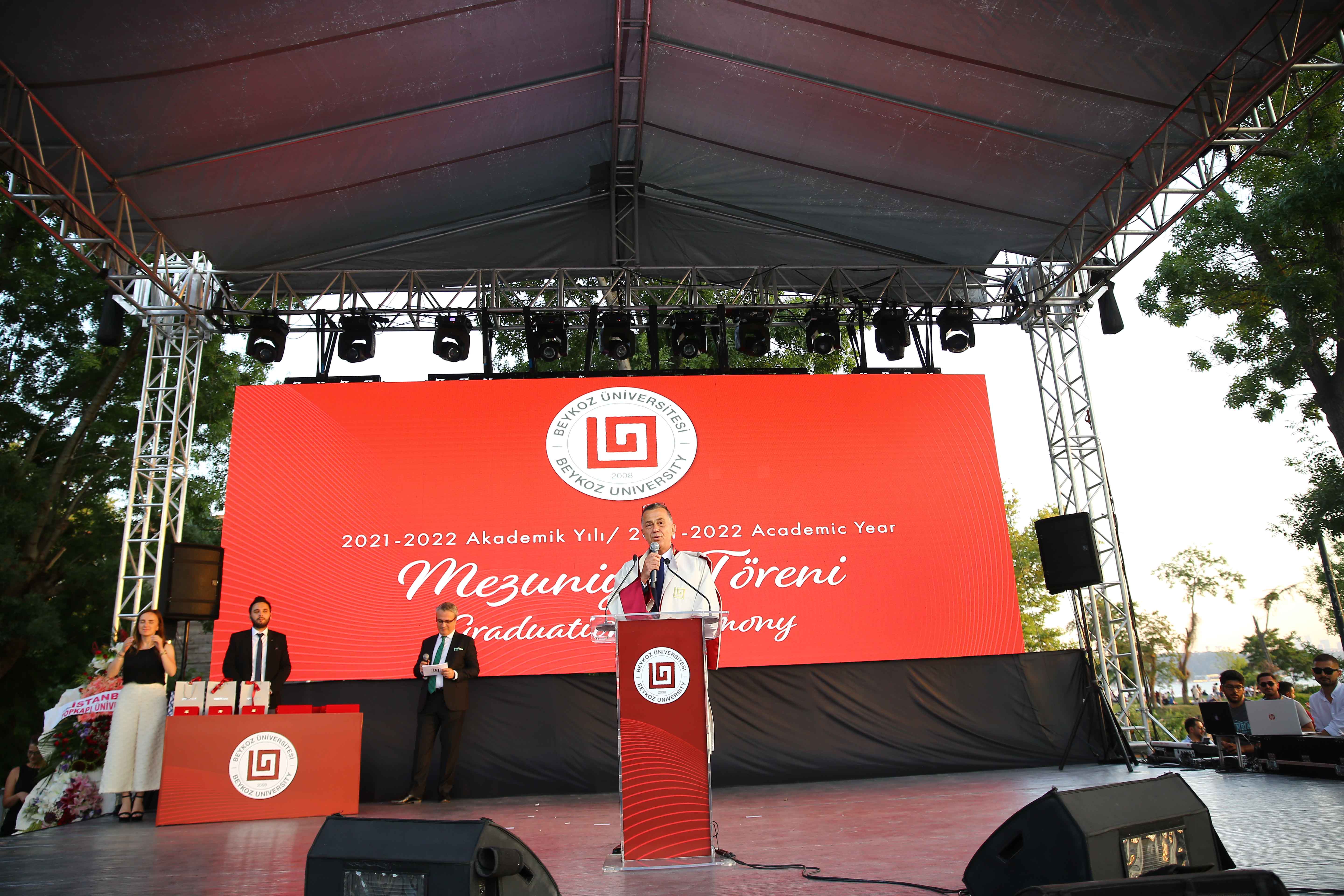 Beykoz Üniversitesi’nde mezuniyet coşkusu yaşandı. 21 Temmuz Perşembe günü düzenlenen törene 2021-2022 akademik yılını başarıyla tamamlayan mezunlar, aileleri ve akademisyenler katıldı. Beykoz Üniversitesi Rektörü Prof. Dr. Mehmet Durman, törende yaptığı konuşmada mezuniyetin yeni bir başlangıç olduğunu belirterek, “Şimdi sizler için zorlu bir yaşam mücadelesi başlıyor. Sahip olduğunuz bu birikim ile mesleğinizde ve dünyanın neresinde olursanız olun yapacağınız işlerde başarılı olmaya adaysınız” dedi.