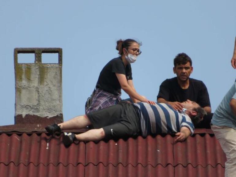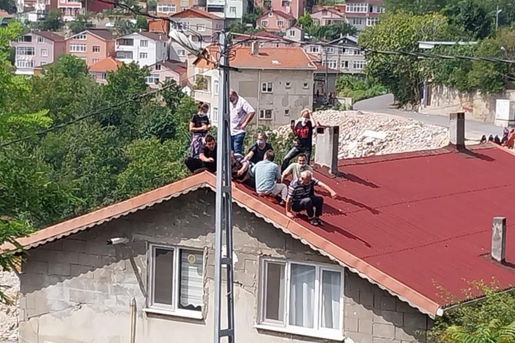 Çevik kuvvet ekipleri yıkım olacak binadan vatandaşları uzaklaştırmaya çalıştı. Bunun üzerine binada yaşayanlar ve bazı mahalleli binanın çatısına çıktı.