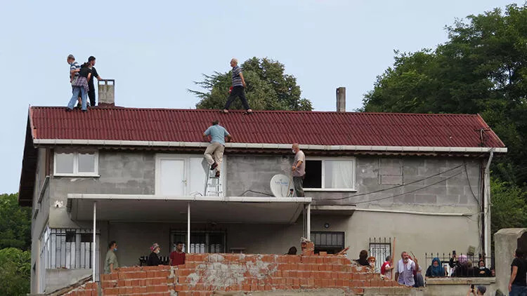 YIKILACAK BİNANIN ÇATISINA ÇIKTILAR